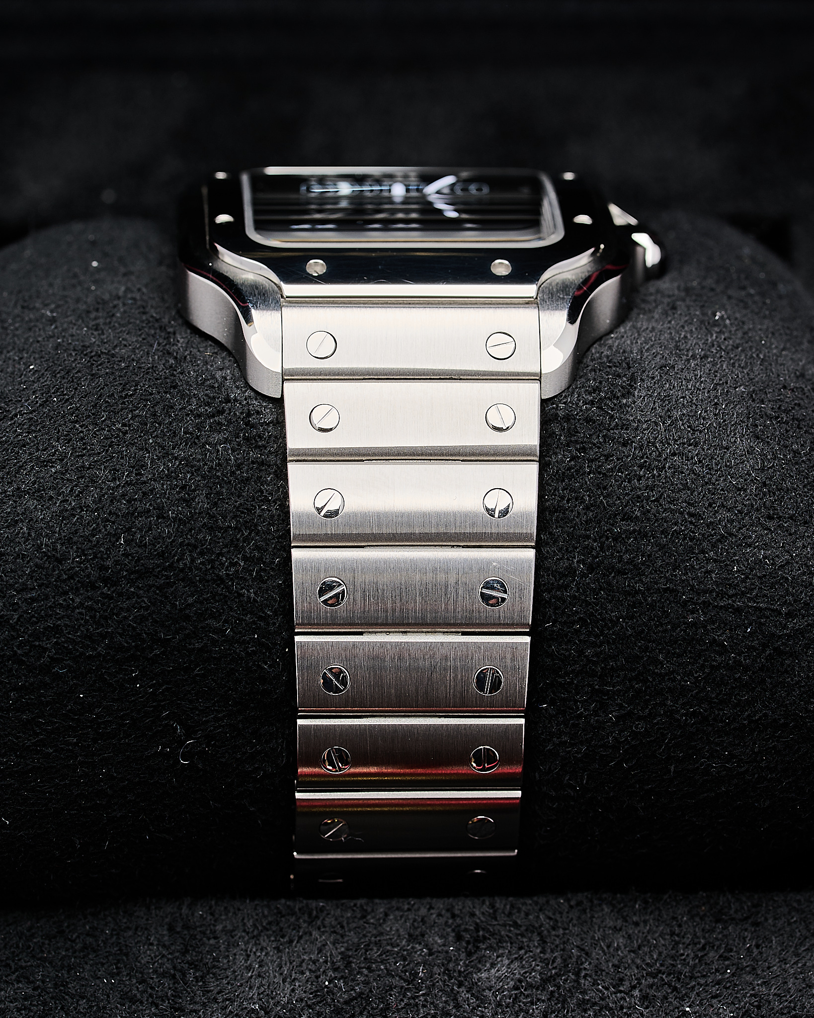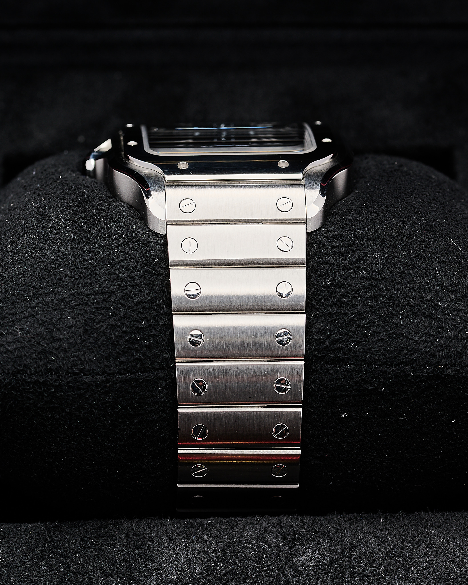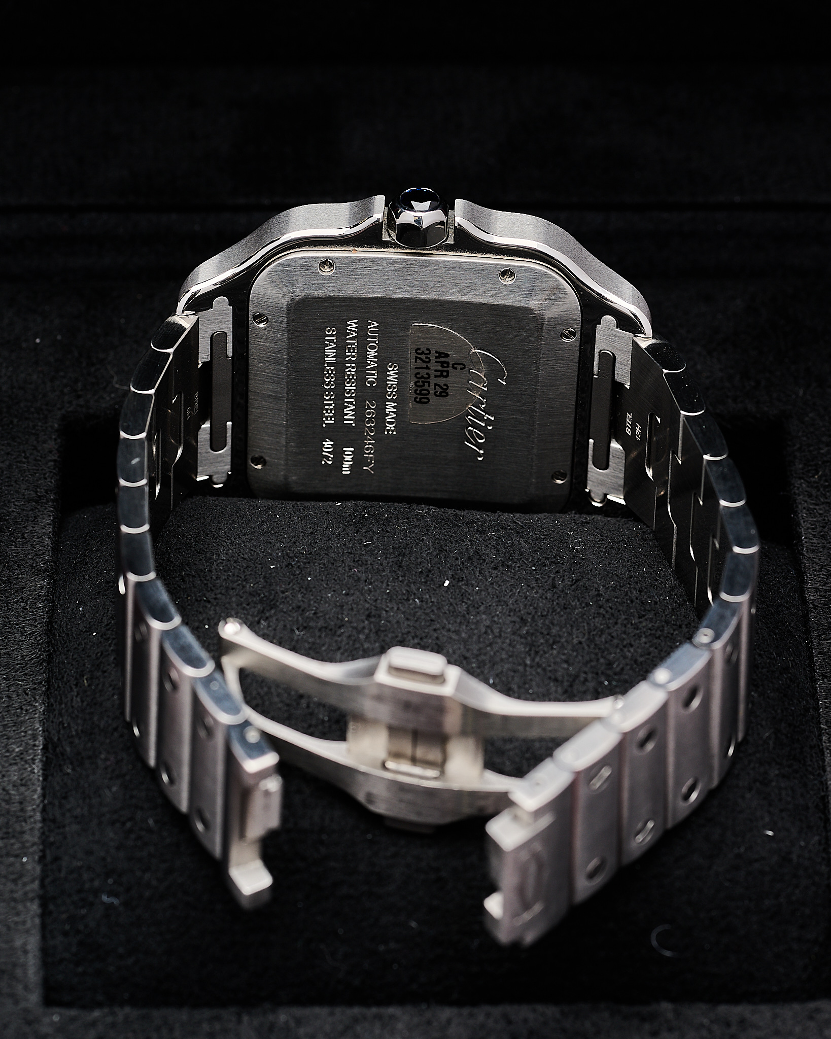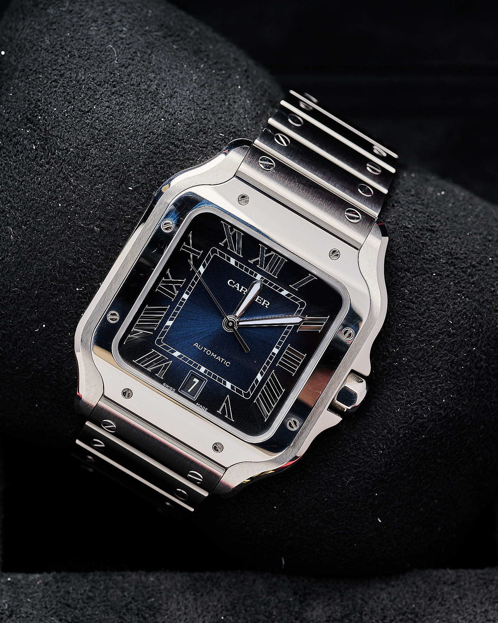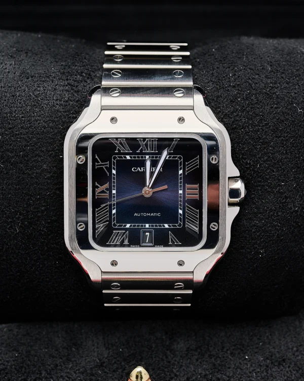 The latest Stainless steel Large version of Cartier’s Santos with the sort after blue dial.