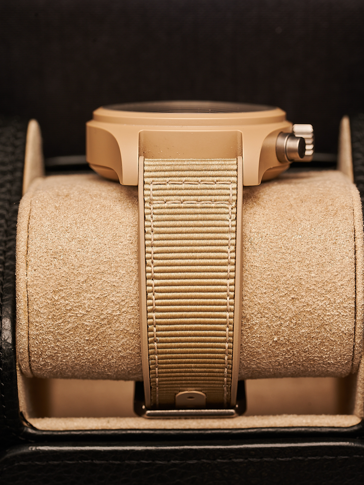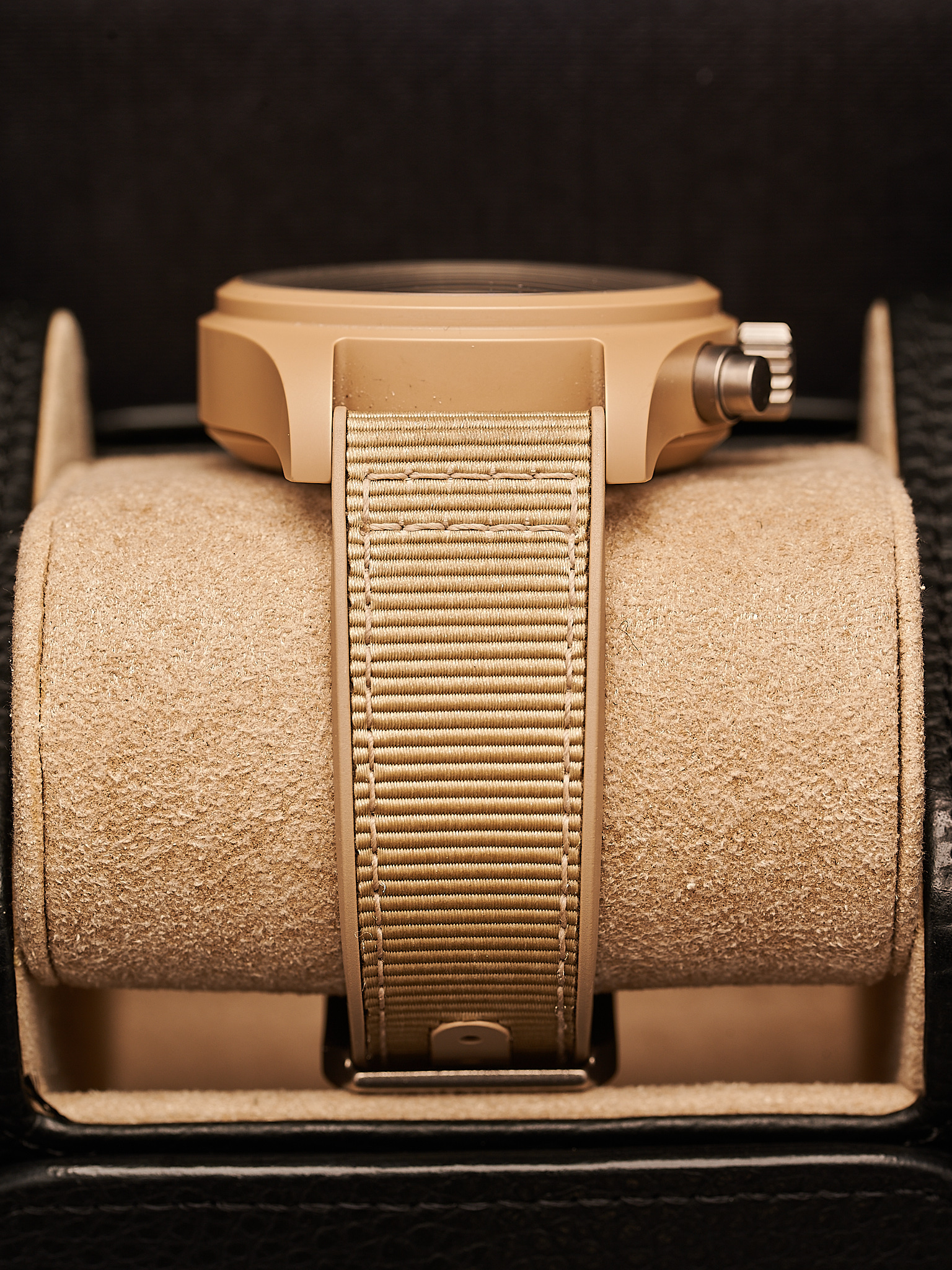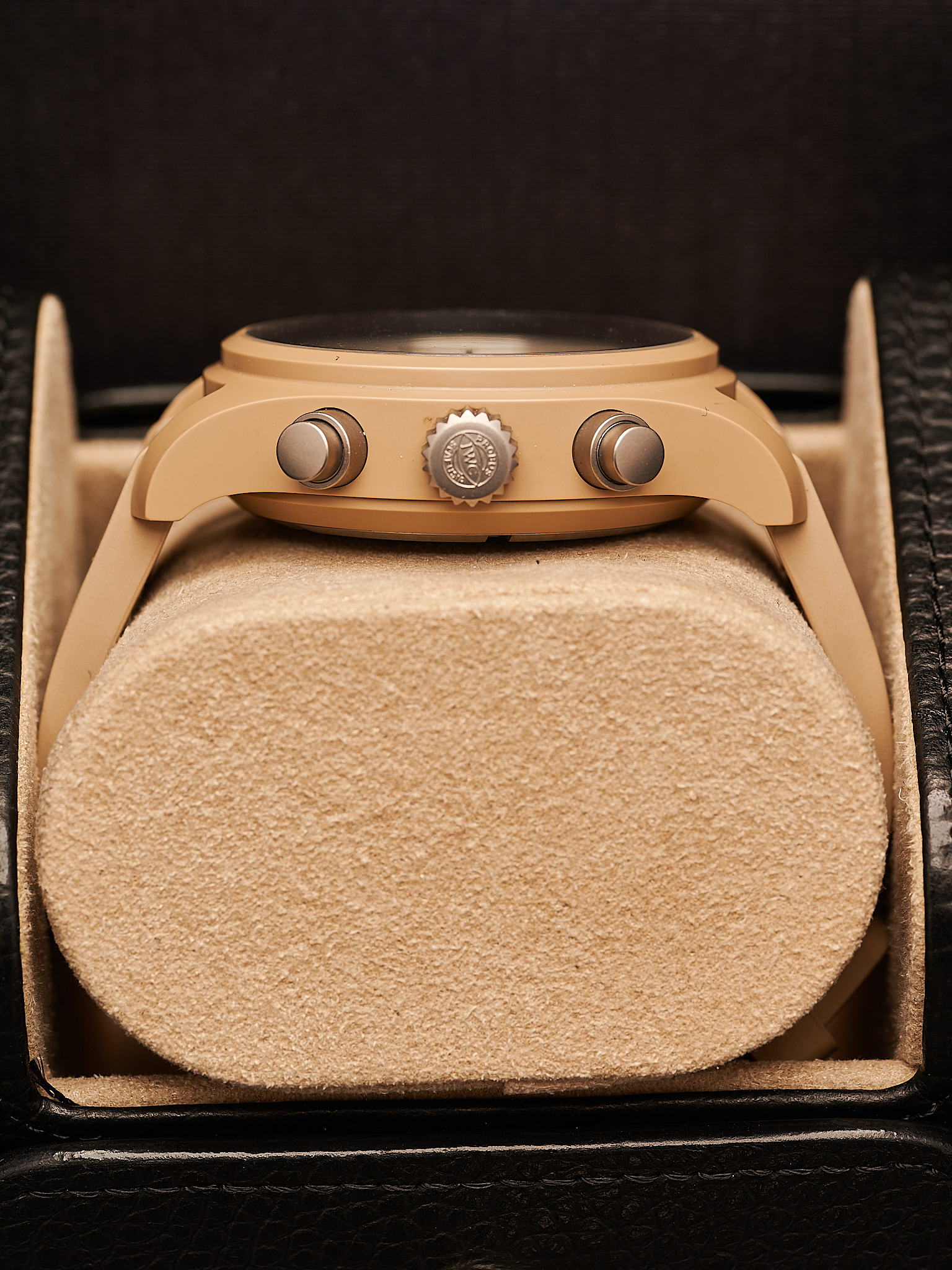 Featuring a 41mm sand-coloured ceramic case, this watch is lightweight, highly durable, and inspired by naval aviation aesthetics. The clean, desert-toned dial offers excellent legibility with luminous detailing, while the automatic movement delivers a reliable 120-hour power reserve.