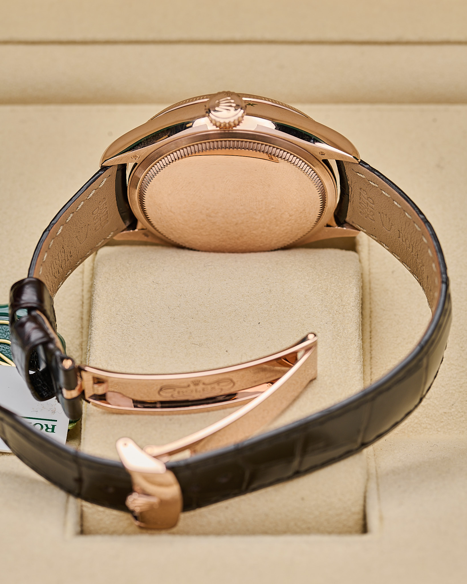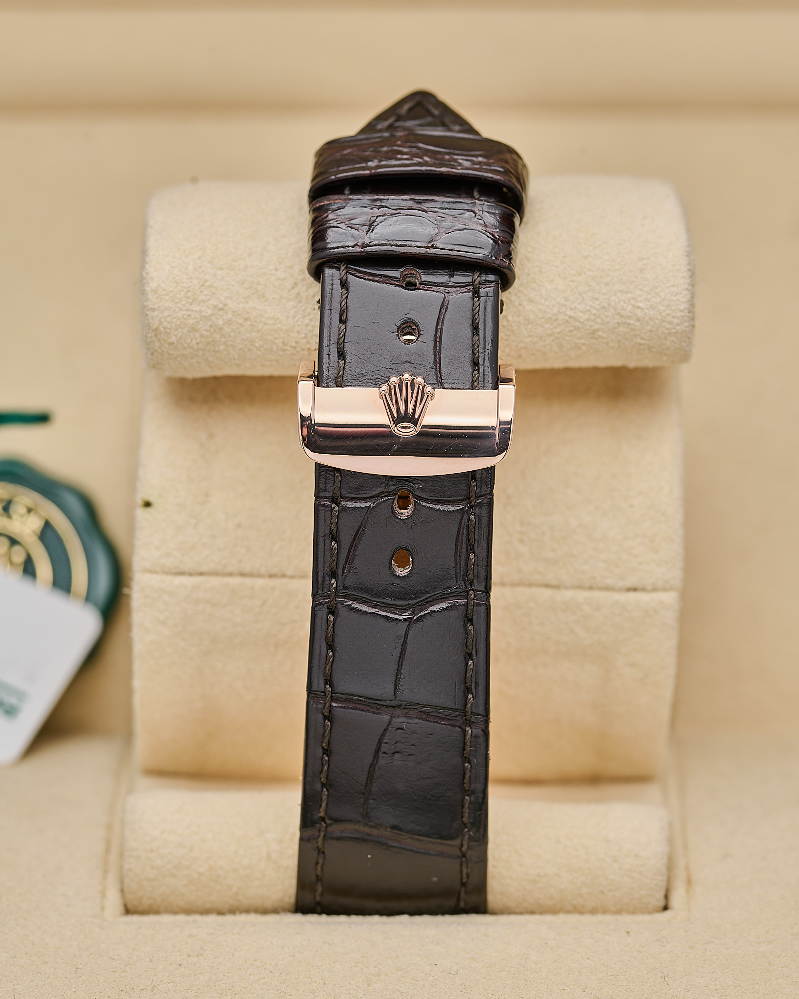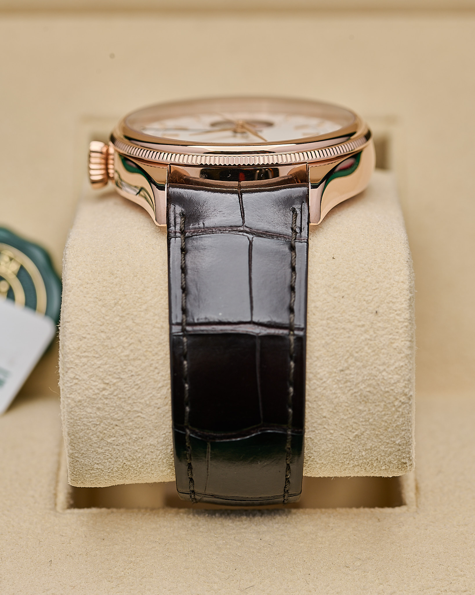 Dial: White lacquer dial with blue enamel moonphase disc and Everose gold meteorite moon