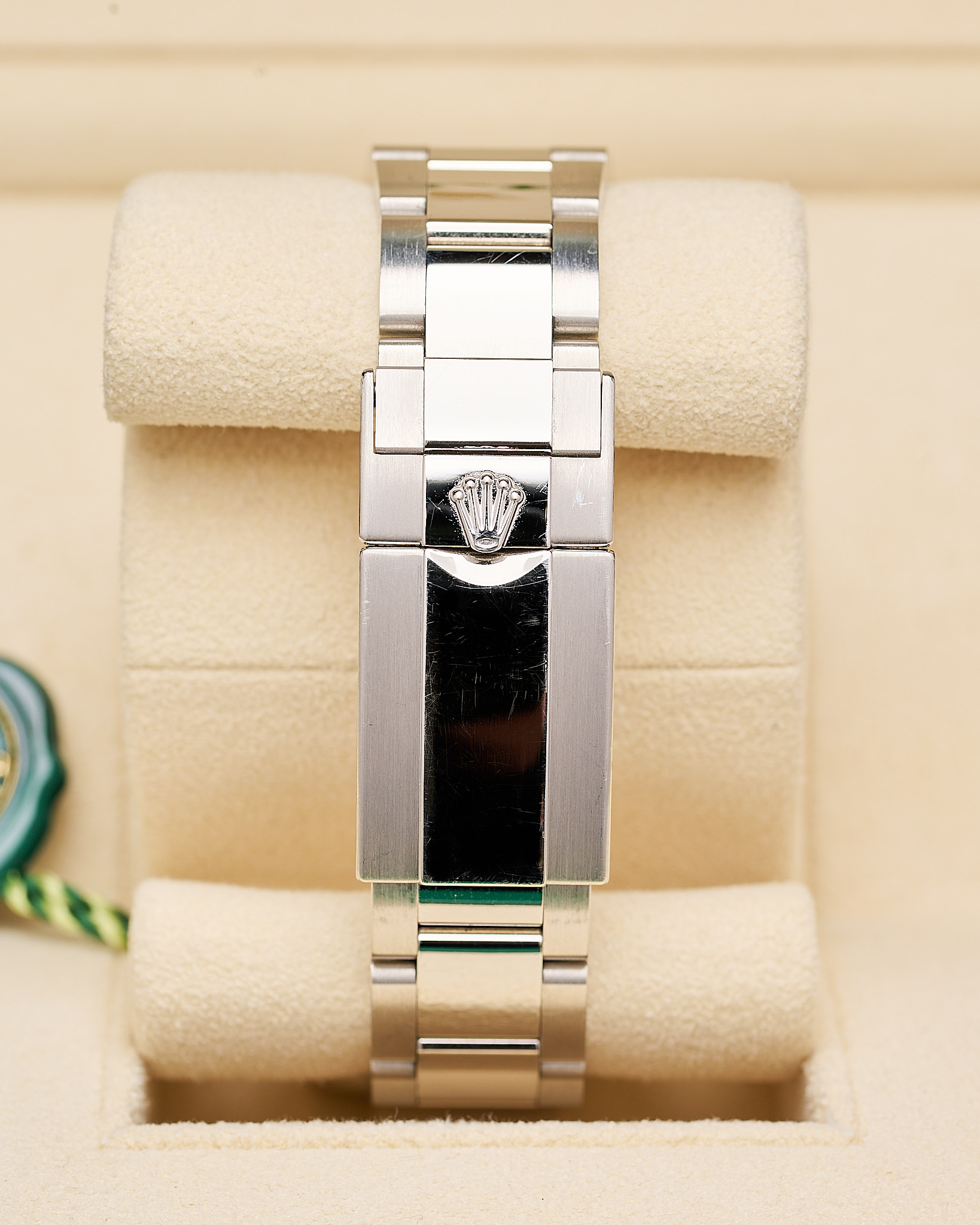 Pristine and lightly worn unpolished condition and sold as a full set, inclusive of: Large new style box, warranty card, round tag, booklets and wallet.