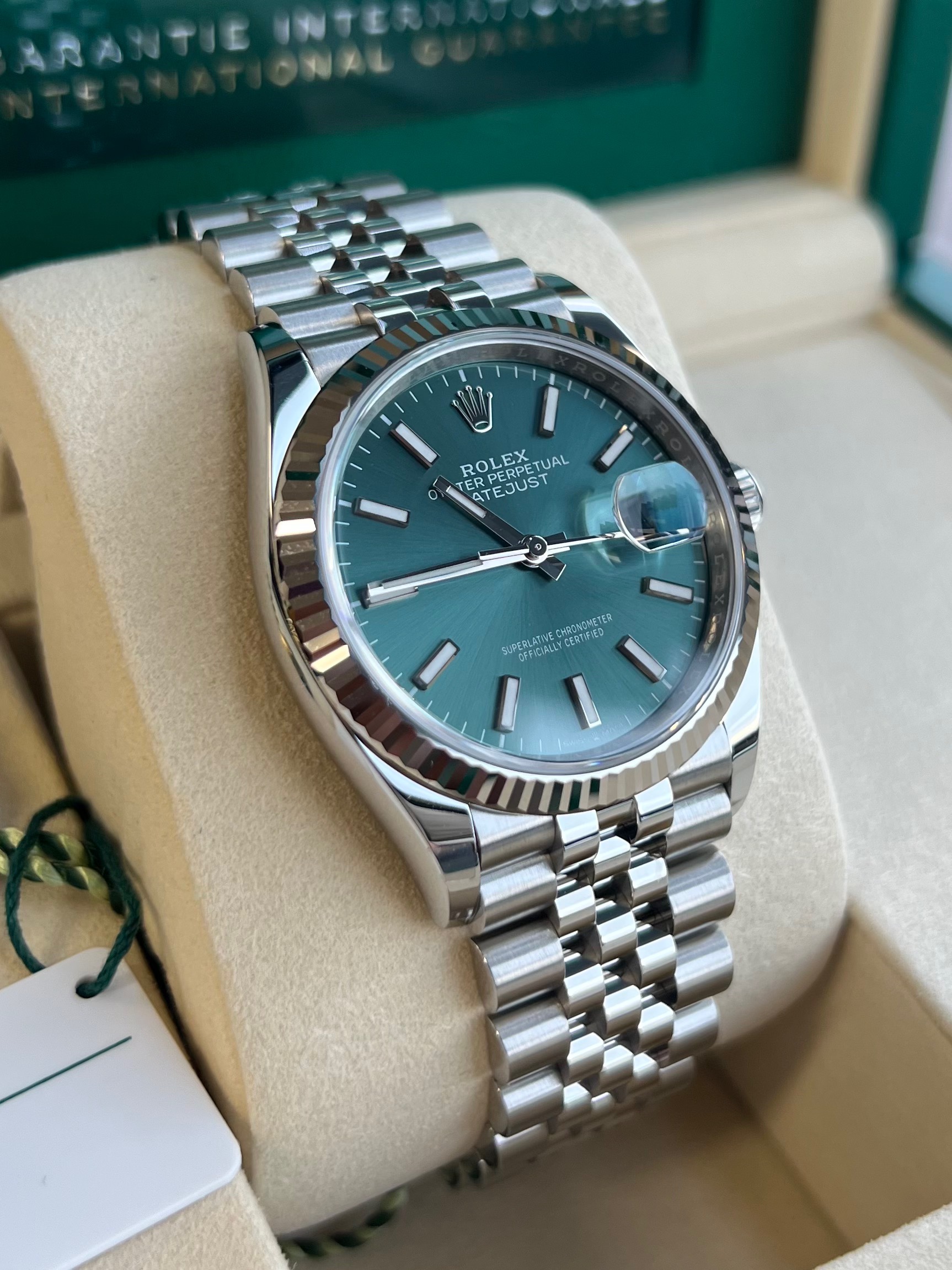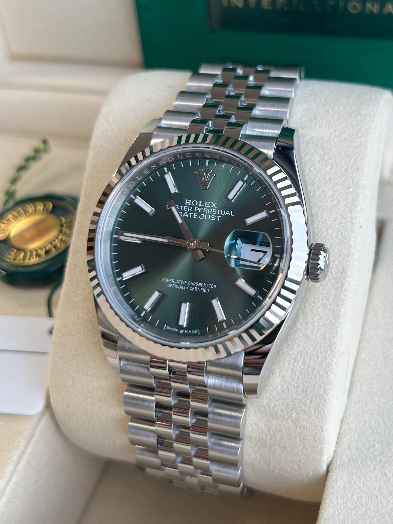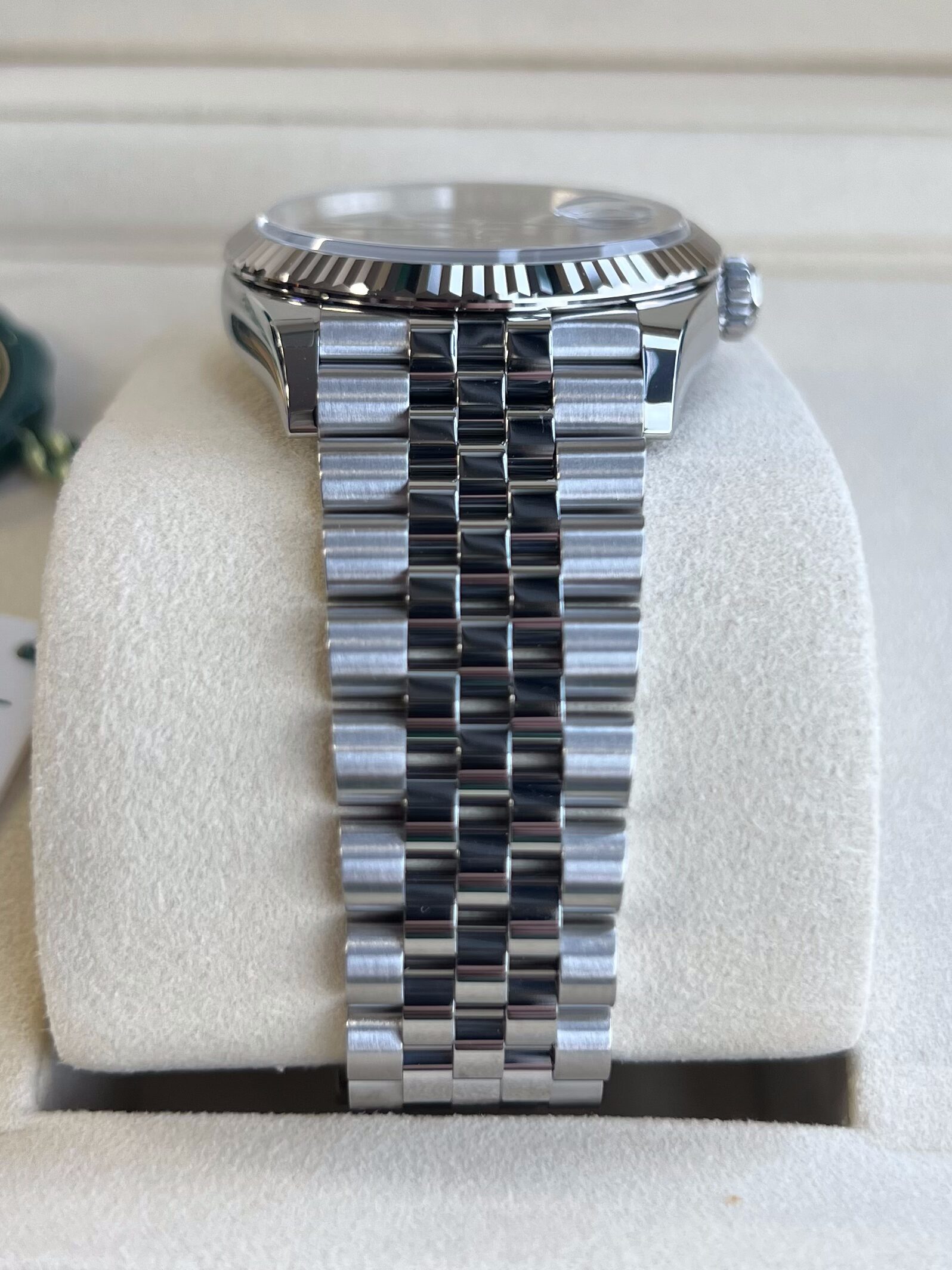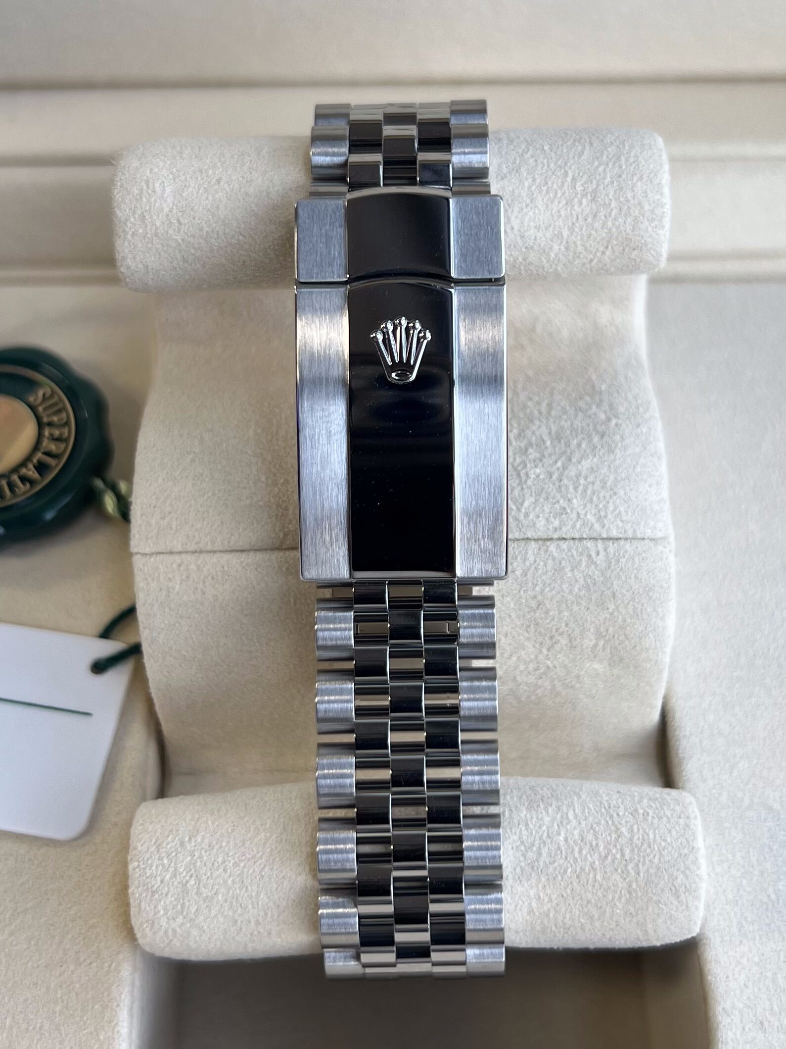 Fitted to the refined Jubilee bracelet with Oysterclasp and Easylink extension.