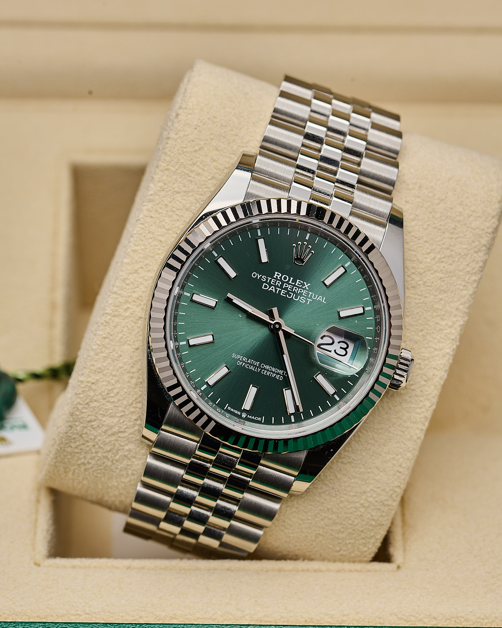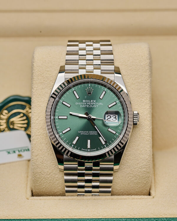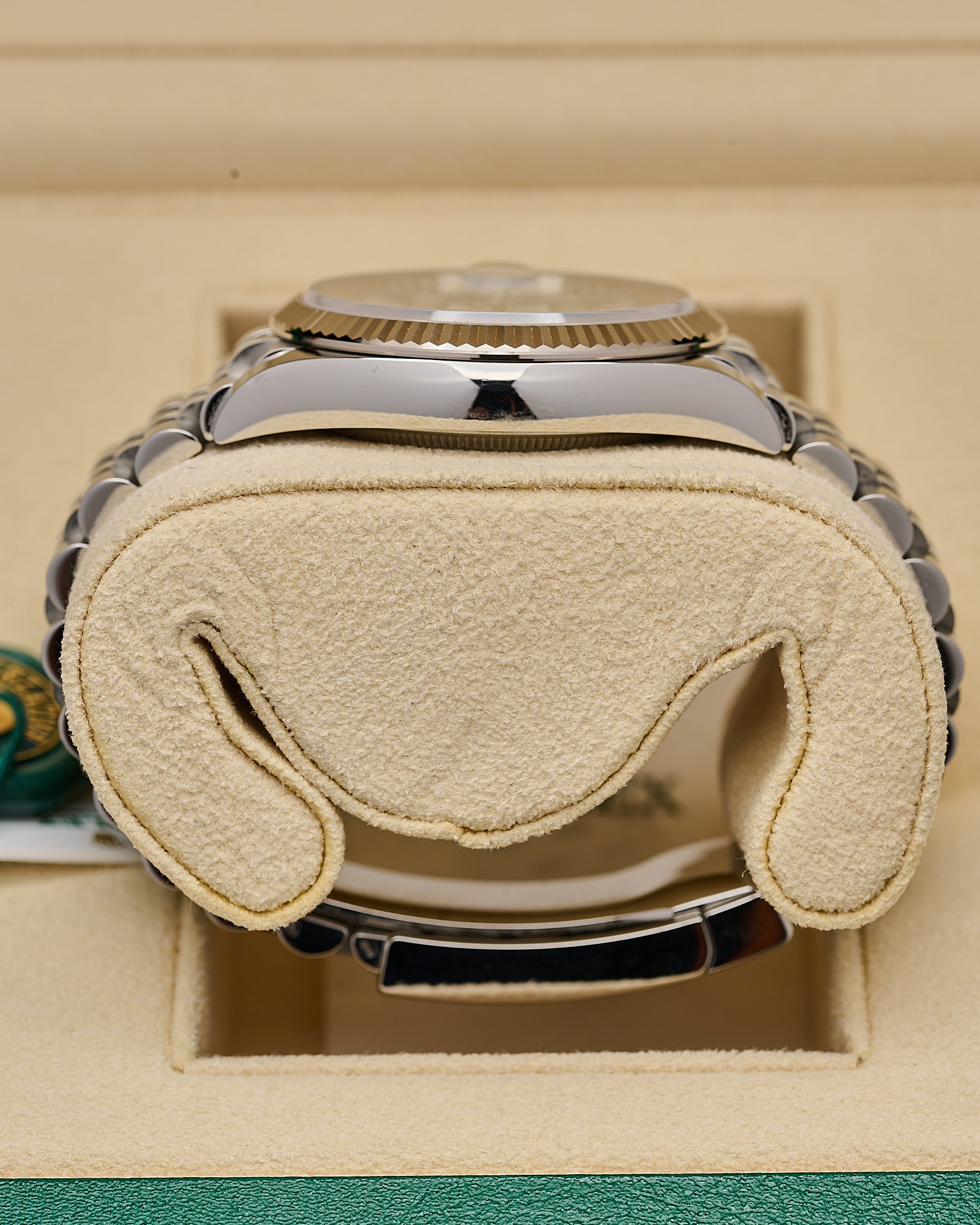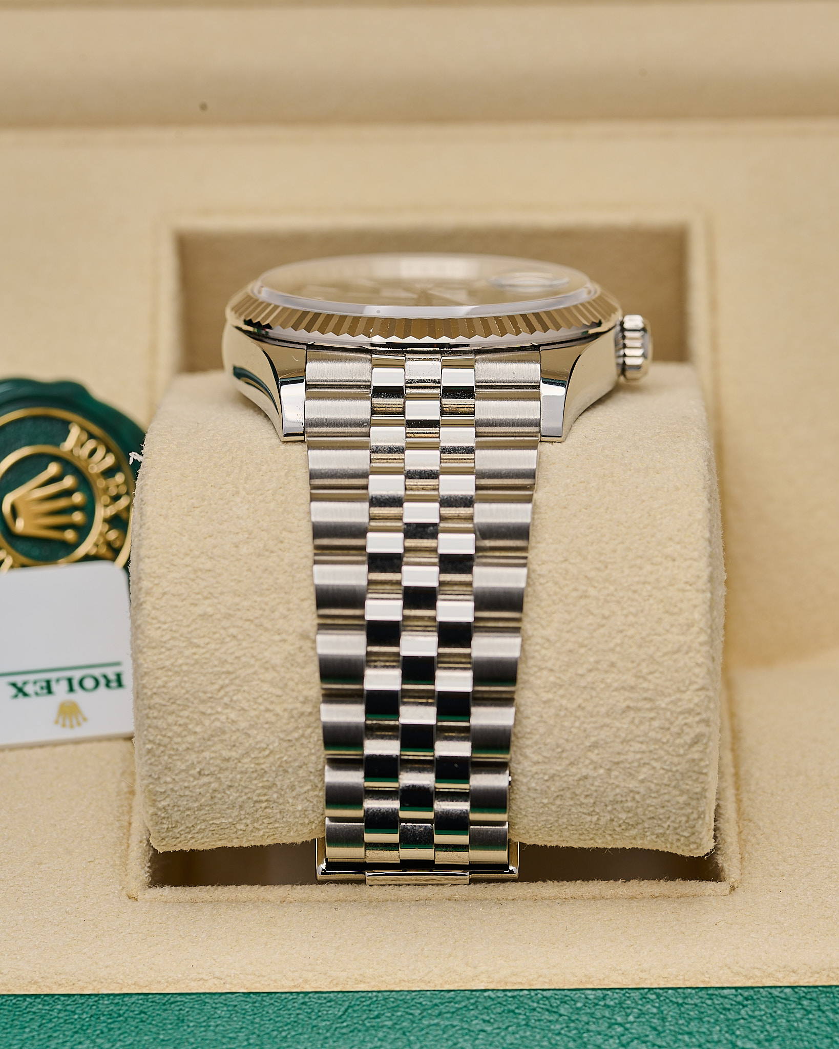 Fitted to the refined Jubilee bracelet with Oysterclasp and Easylink extension.