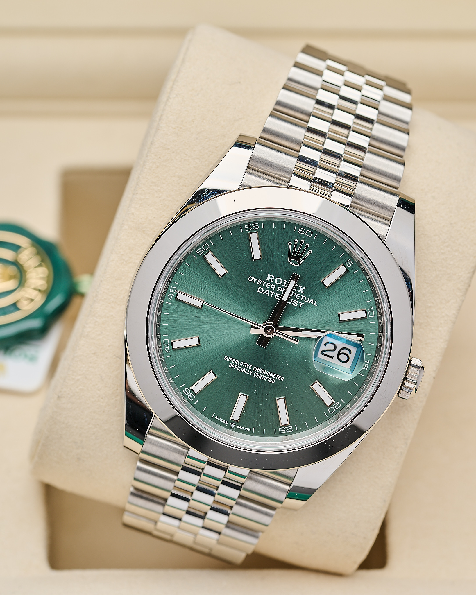 Rolex Datejust 126300 with green dial is one of the most sought-after modern Datejust configurations.