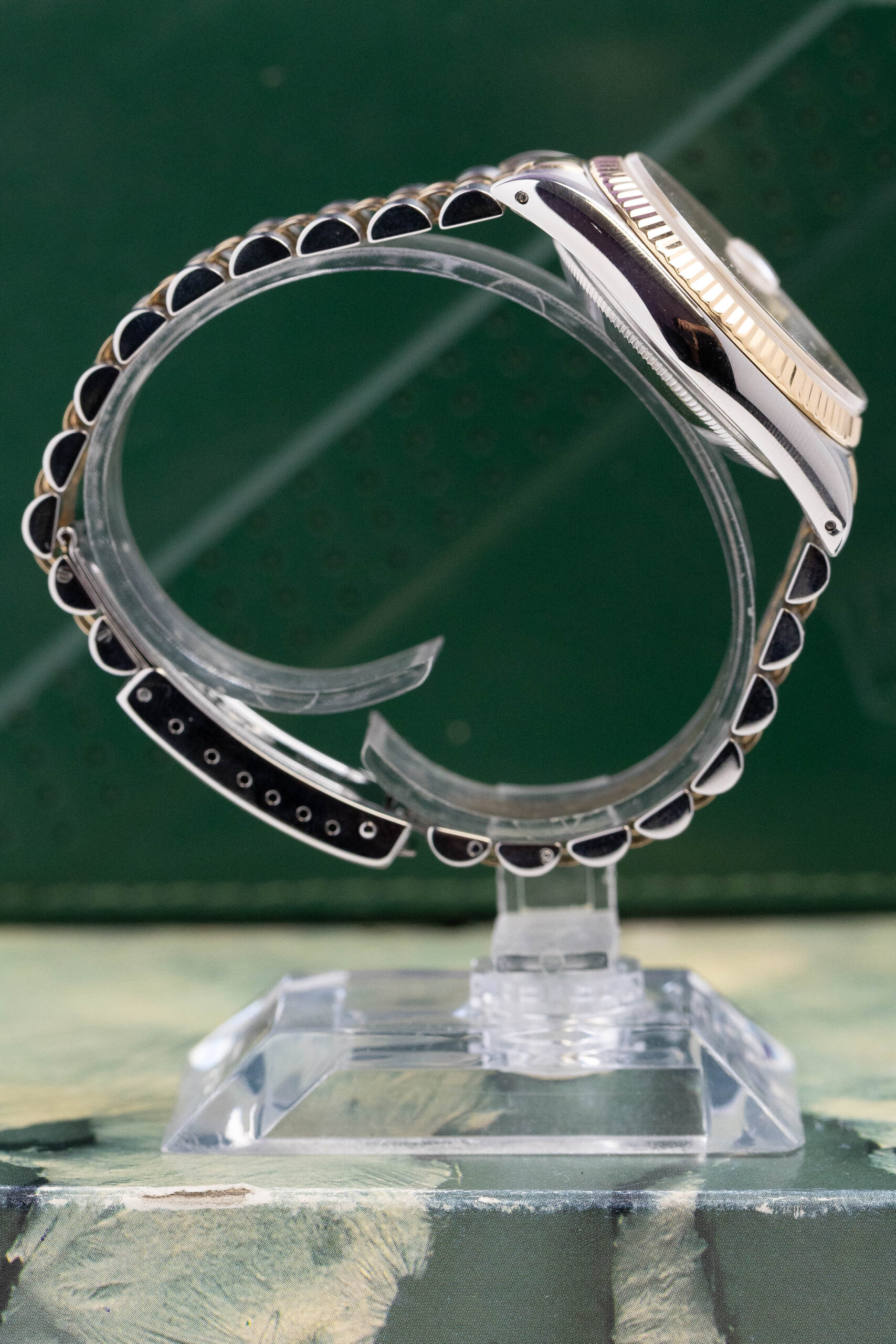 Discover enduring luxury with this stunning Rolex Datejust 16233, a perfect blend of sophistication, reliability, and classic Rolex design. Crafted in stainless steel and 18k yellow gold, this iconic 36mm Datejust features a factory Rolex champagne diamond dial, offering a touch of brilliance that elevates any wrist.