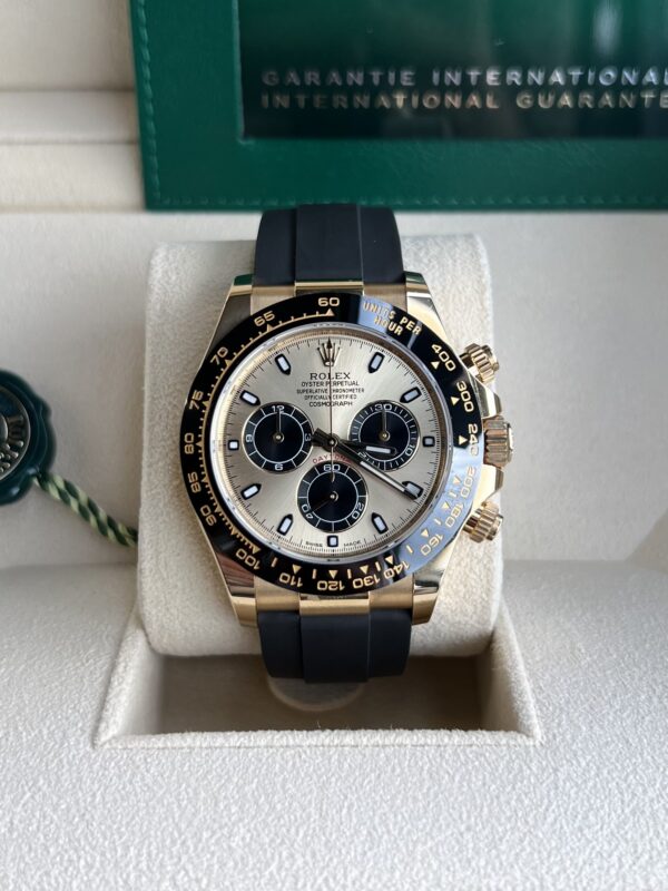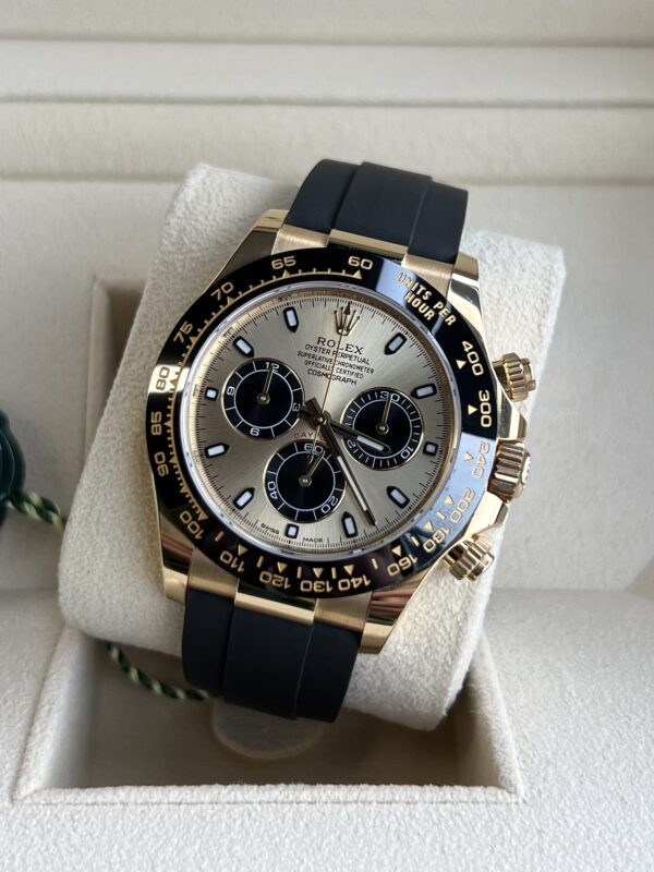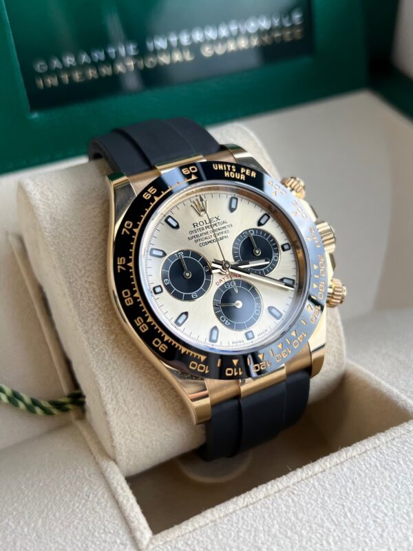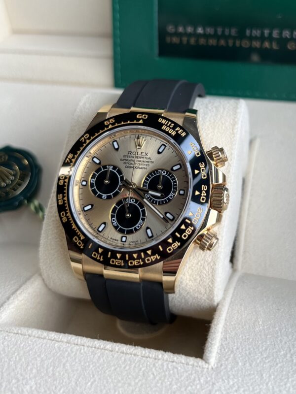 Known as the “Pikachu” dial, this yellow-gold Oysterflex combination perfectly blends function, style, and class.