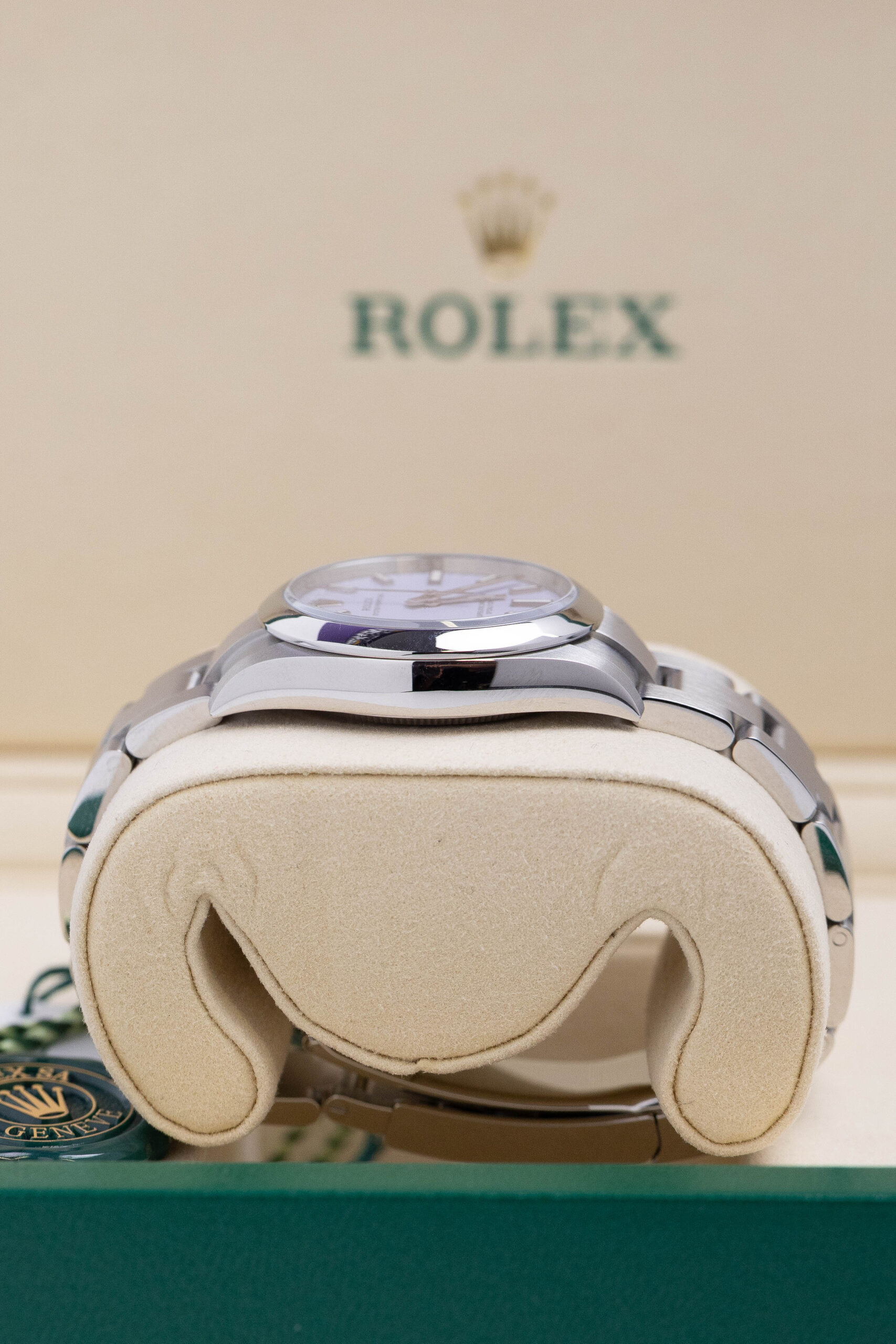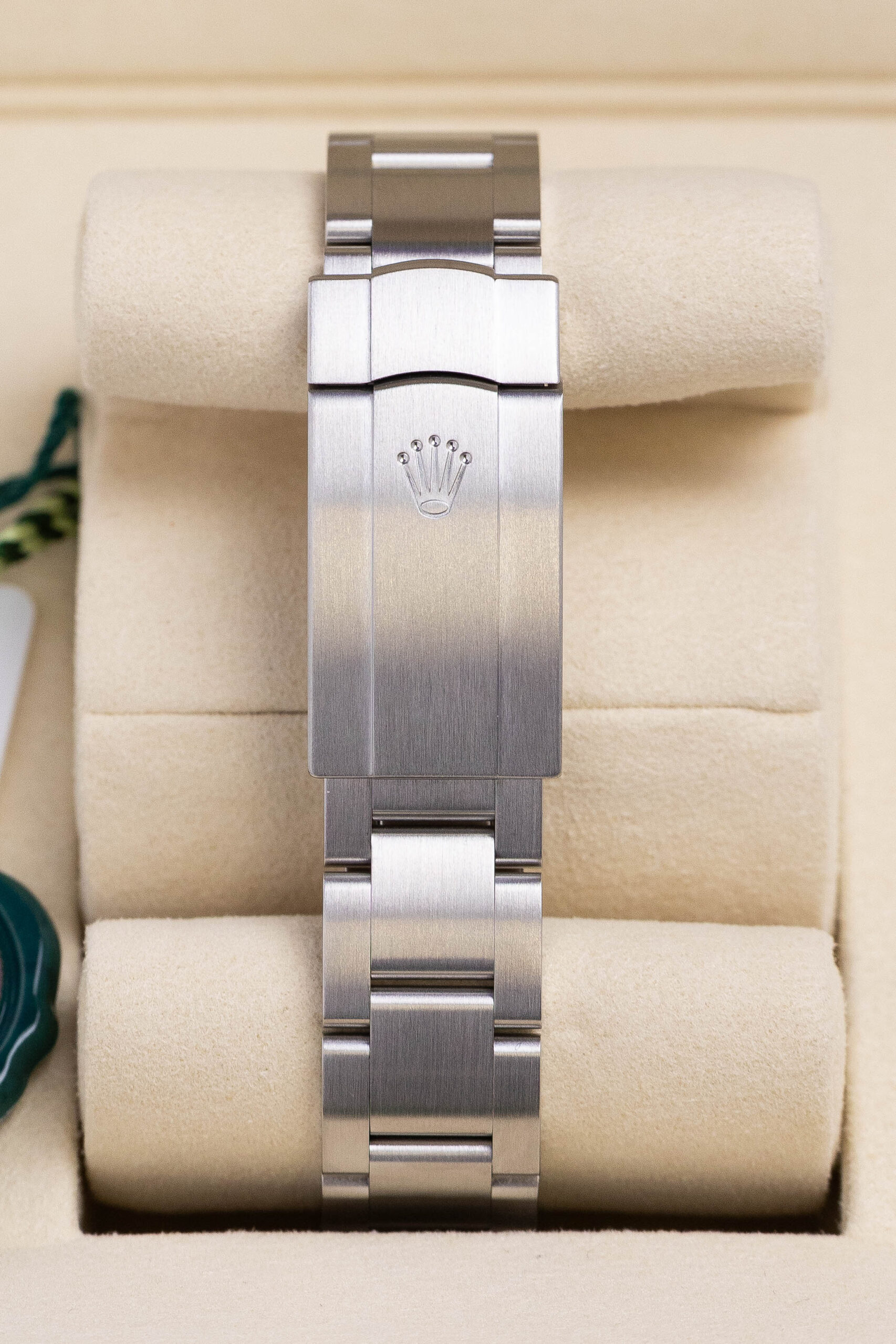 In unworn condition, this Rolex watch comes complete as a full set. Inclusive of both boxes, warranty card, serial tag (most important), round tag, booklet, wallet and original receipt.