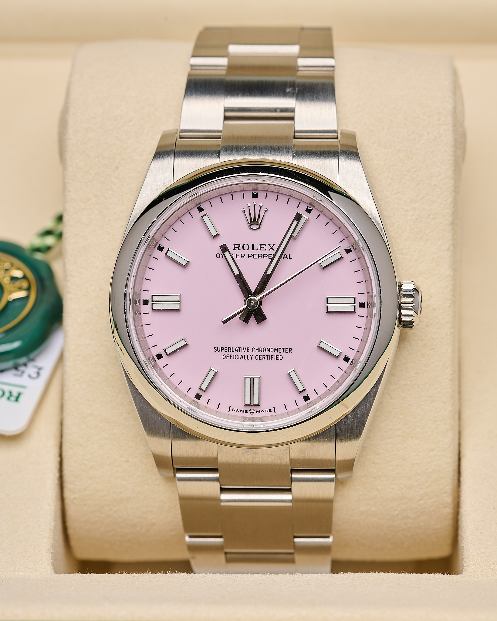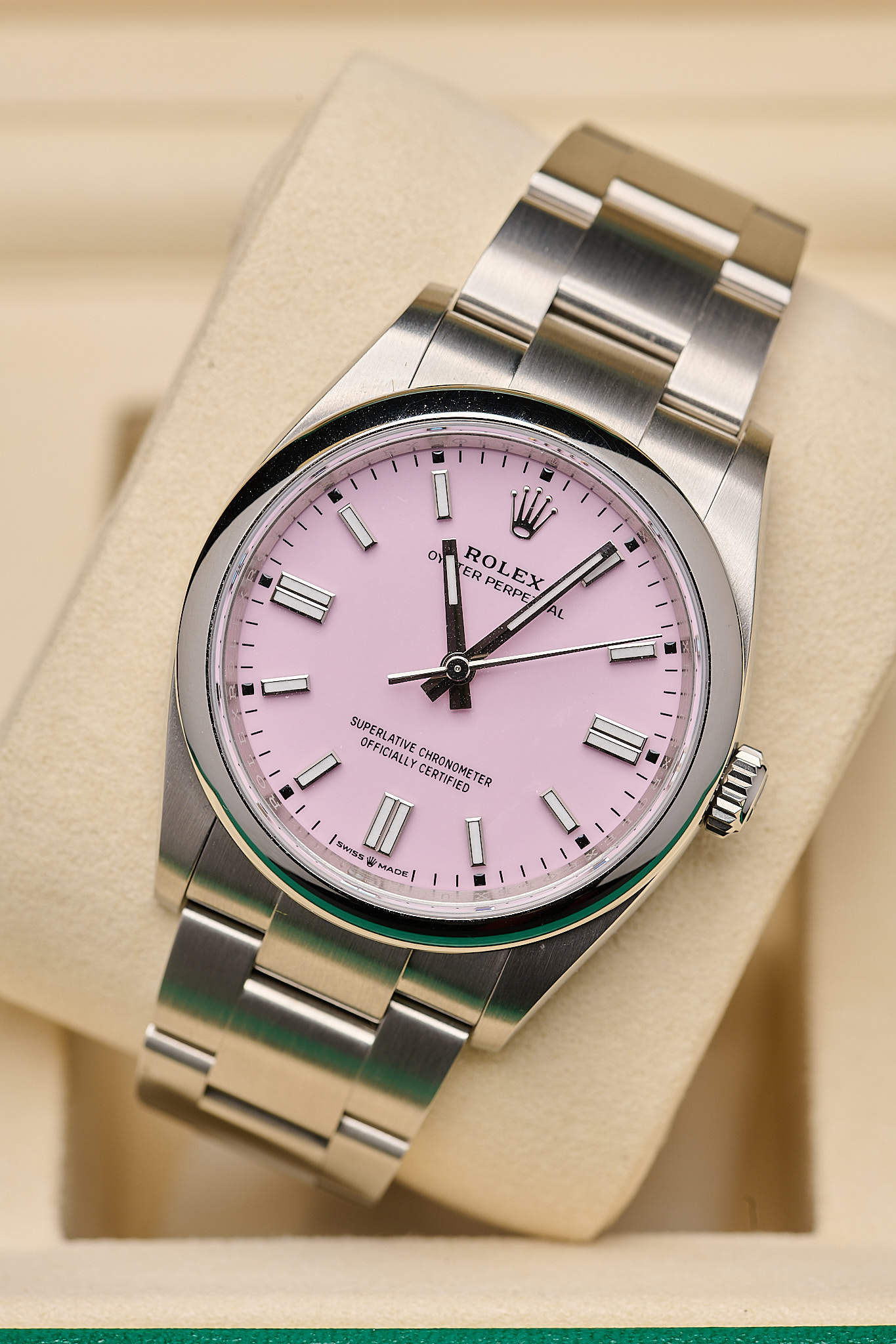 A new 2025 Candy Pink dial in stock and ready to wear.
