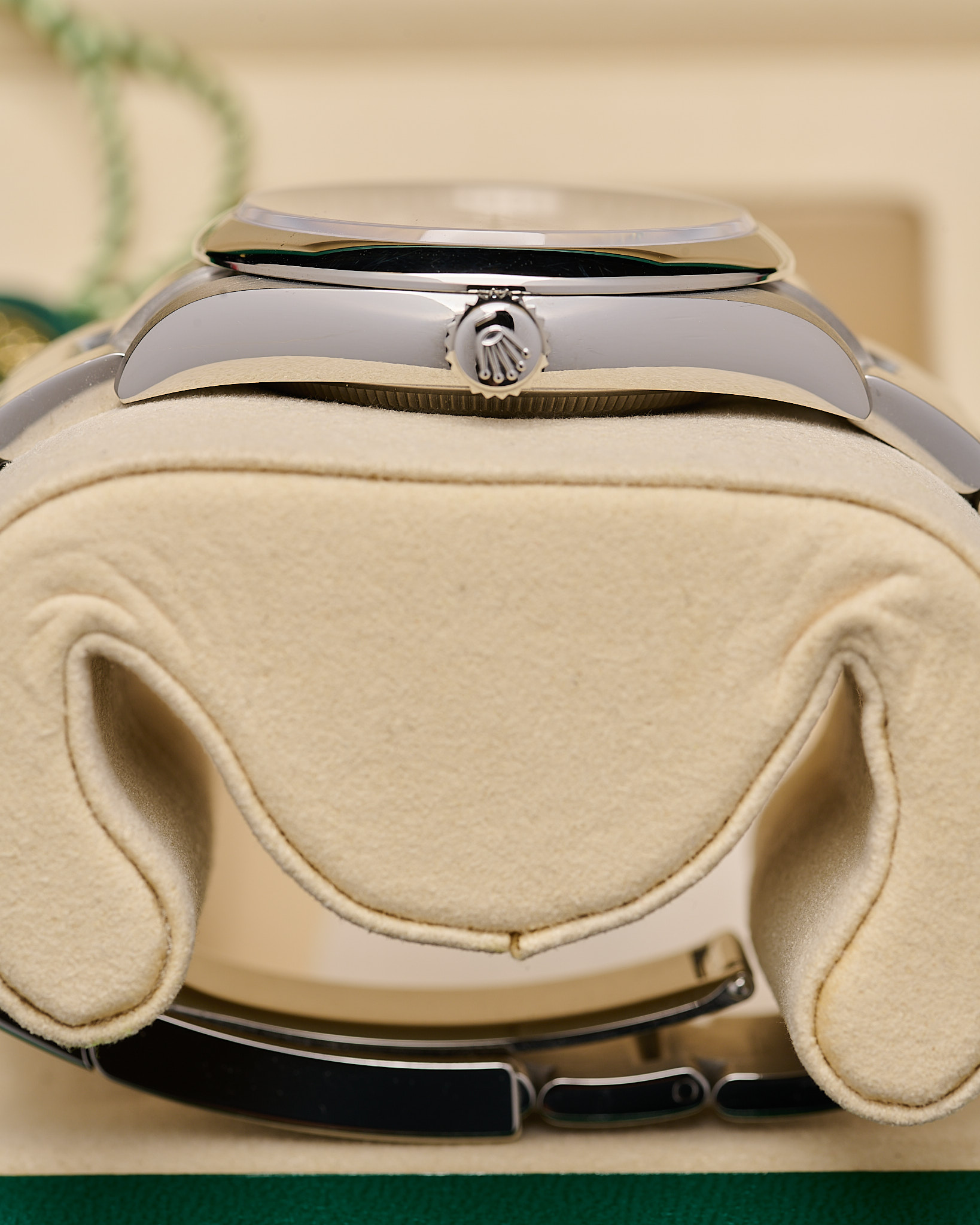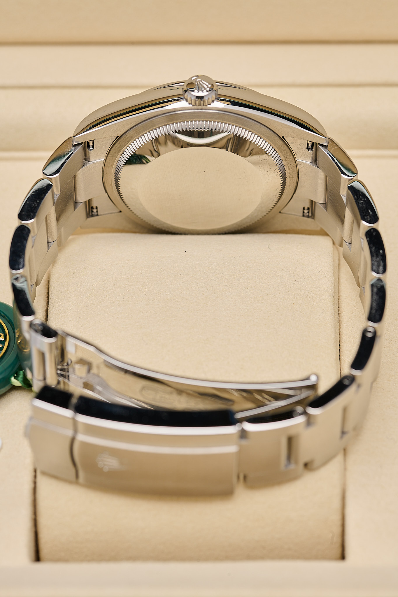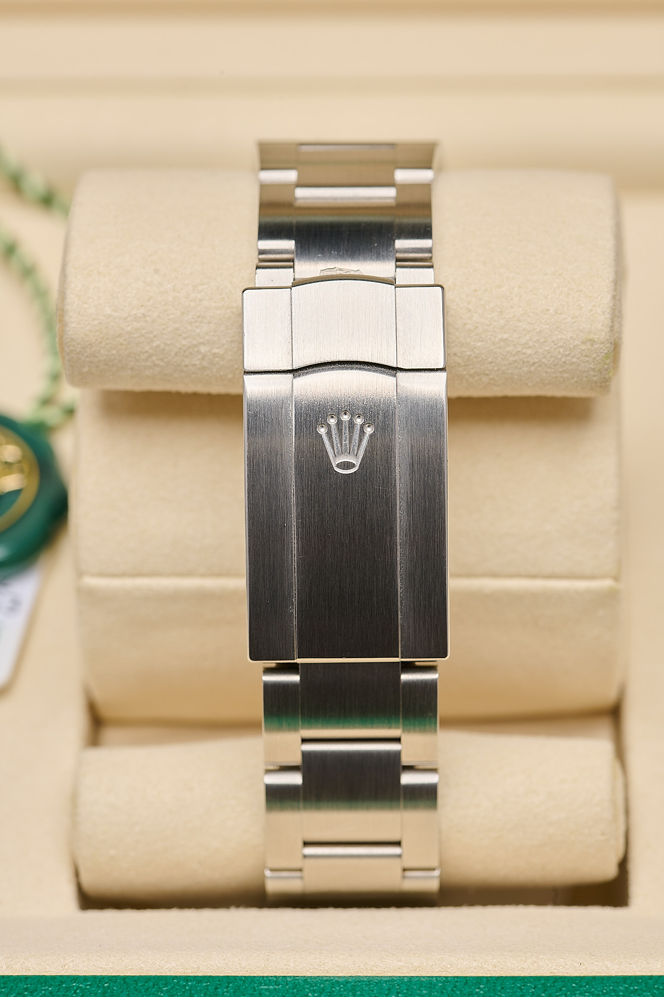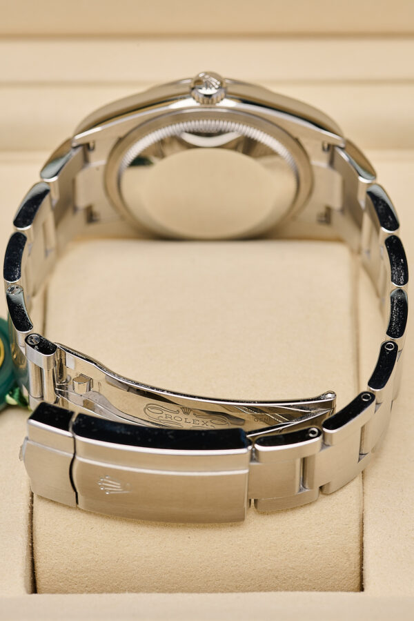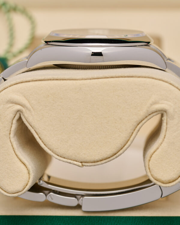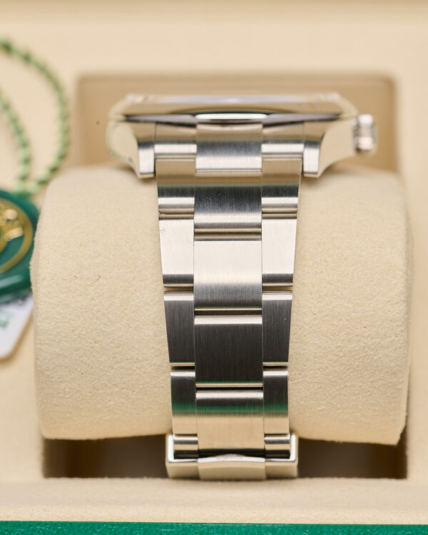 Housed in a 31mm Oystersteel case with a smooth bezel and a sapphire crystal. The vibrant dial features luminous baton markers and classic baton hands, paired with the robust Oyster bracelet and Easylink comfort extension..