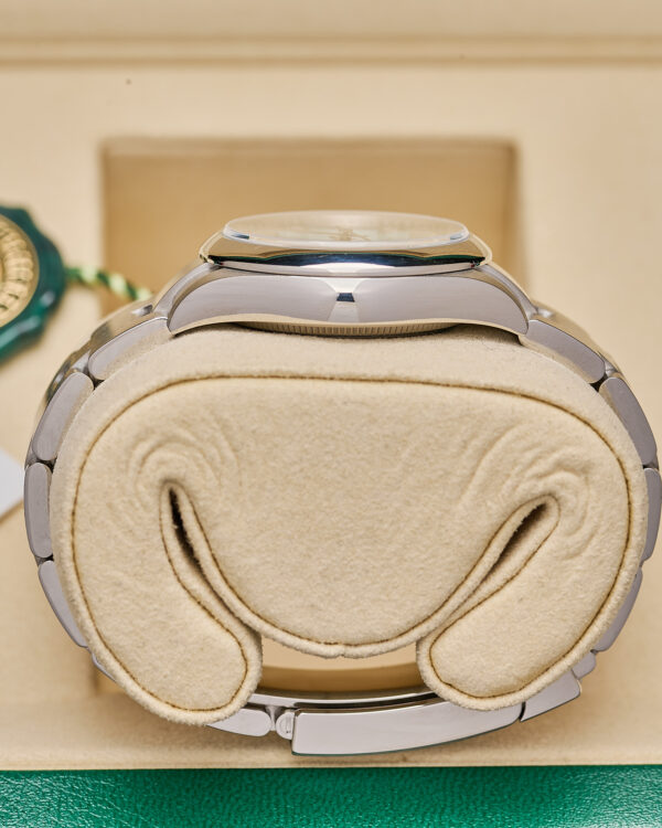 This 2025 watch is unworn and presented in a must have full set: both boxes, warranty card, serial tag (shows dial code), round tag, booklets, wallet.