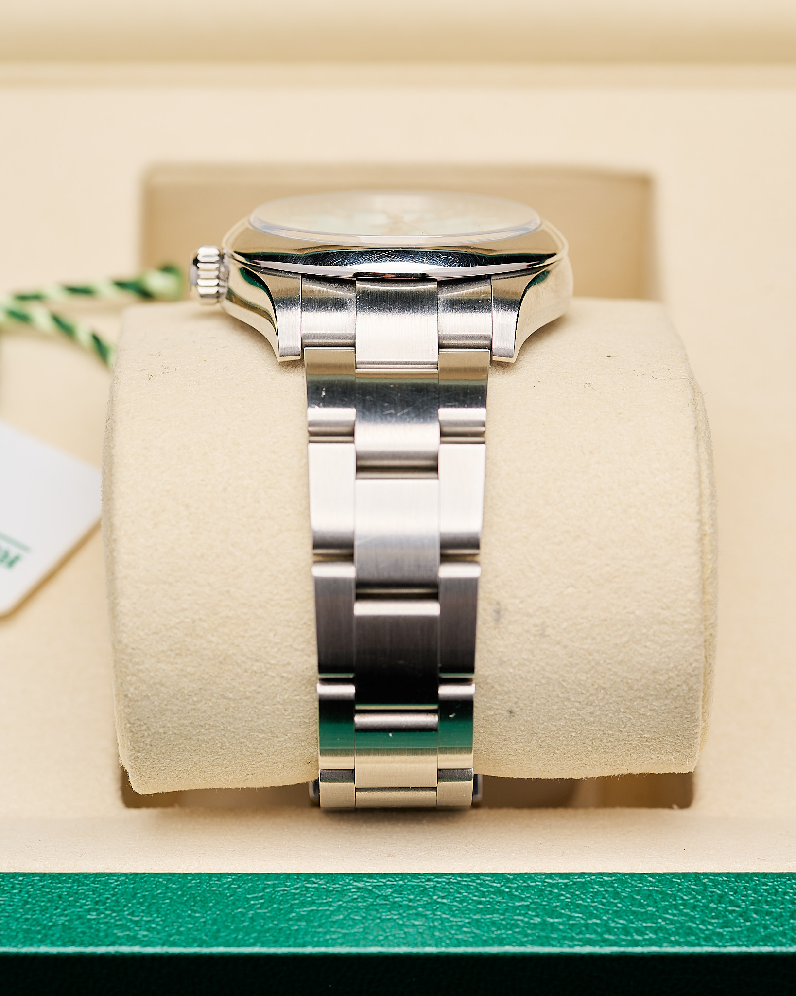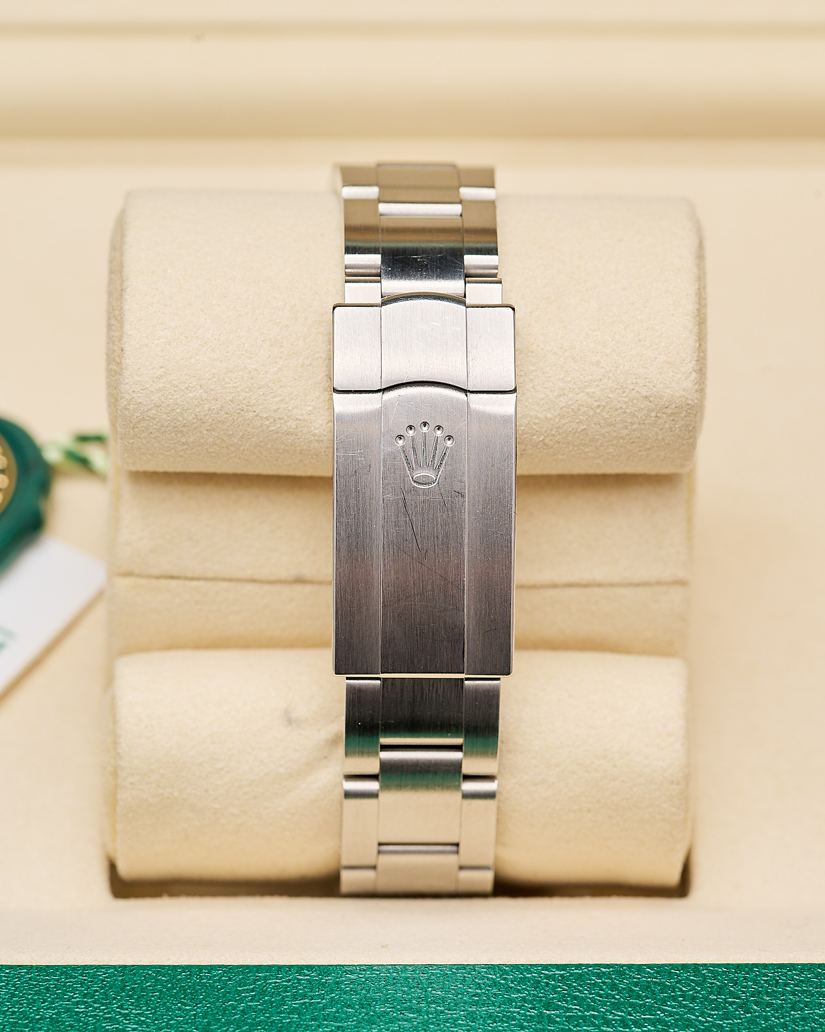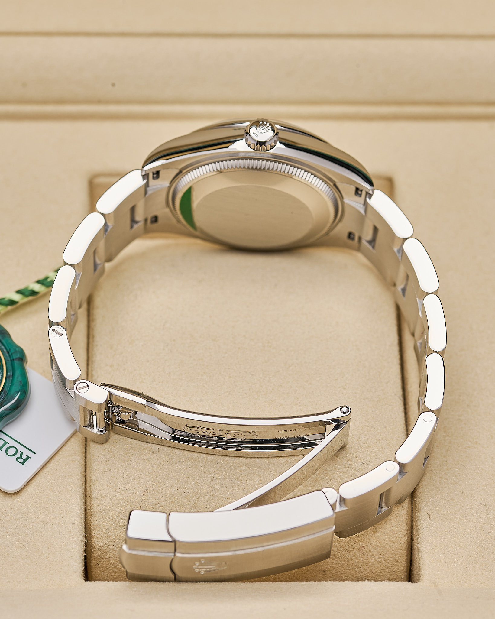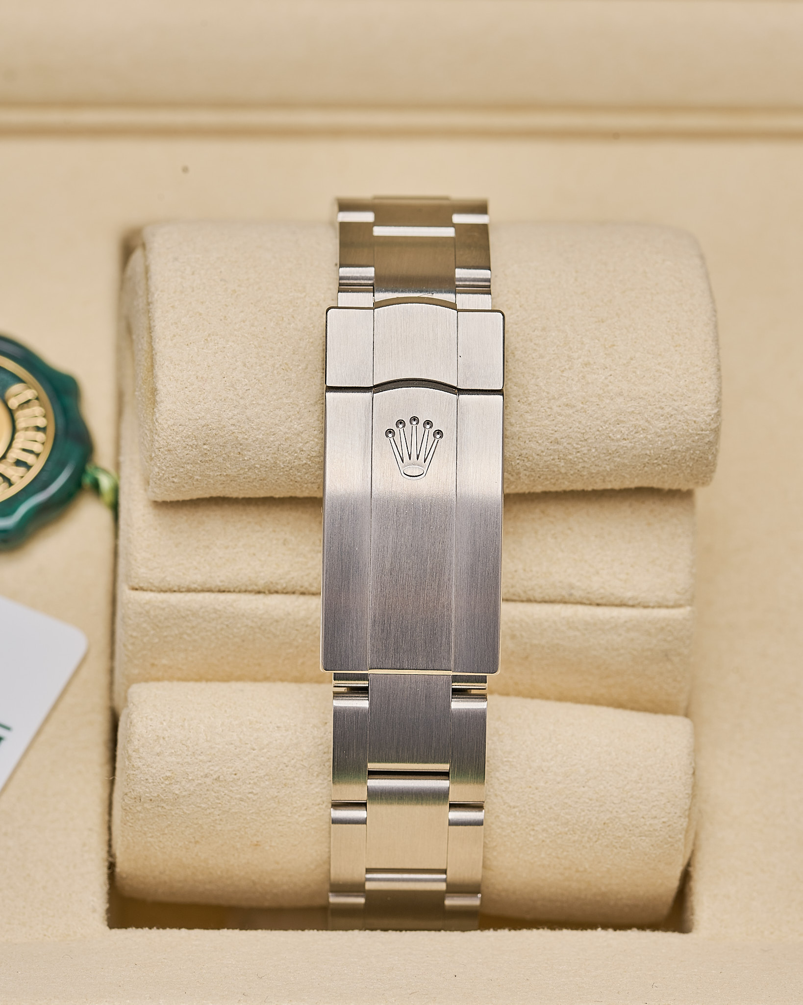 This 2025 watch is unworn and presented in a must have full set: both boxes, warranty card, serial tag (shows dial code), round tag, booklets, wallet.