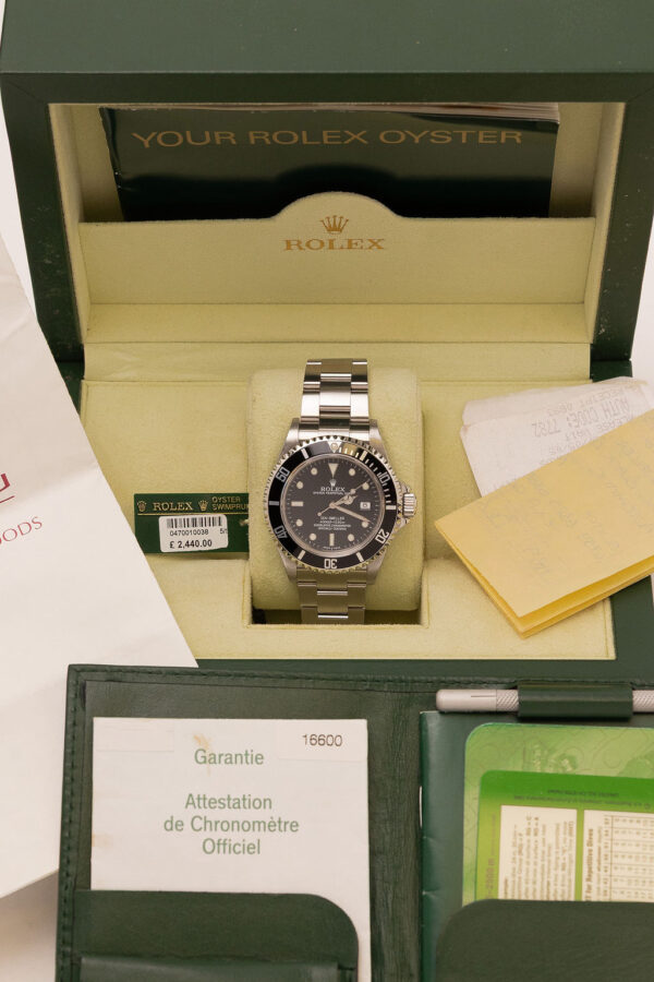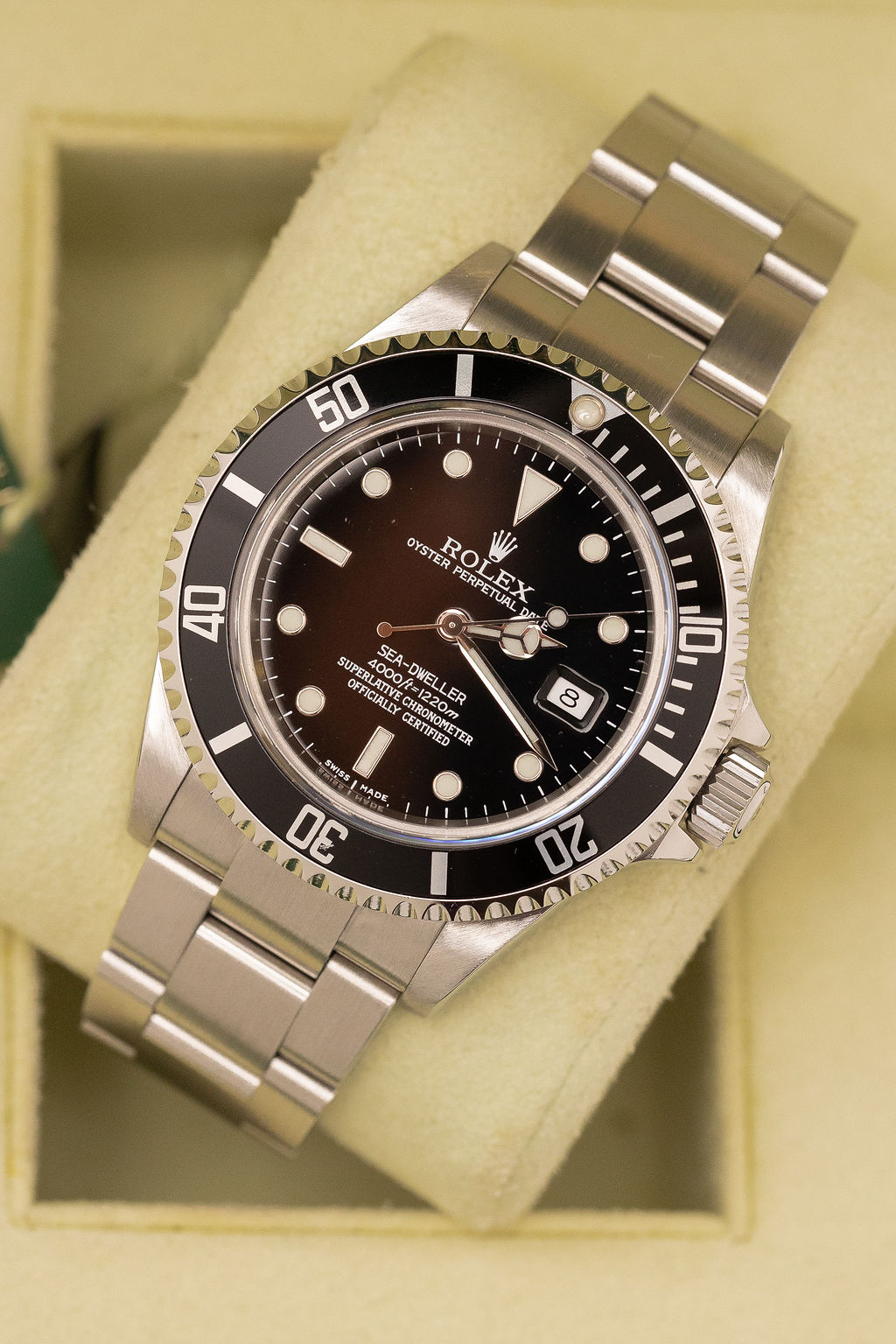 Engineered for endurance and born for the depths, the Rolex Sea-Dweller 16600 (2005) is a true tool watch designed for professional divers who demand absolute reliability. Its 40mm Oyster case, crafted from 904L stainless steel, delivers uncompromising strength and a timeless, functional aesthetic.