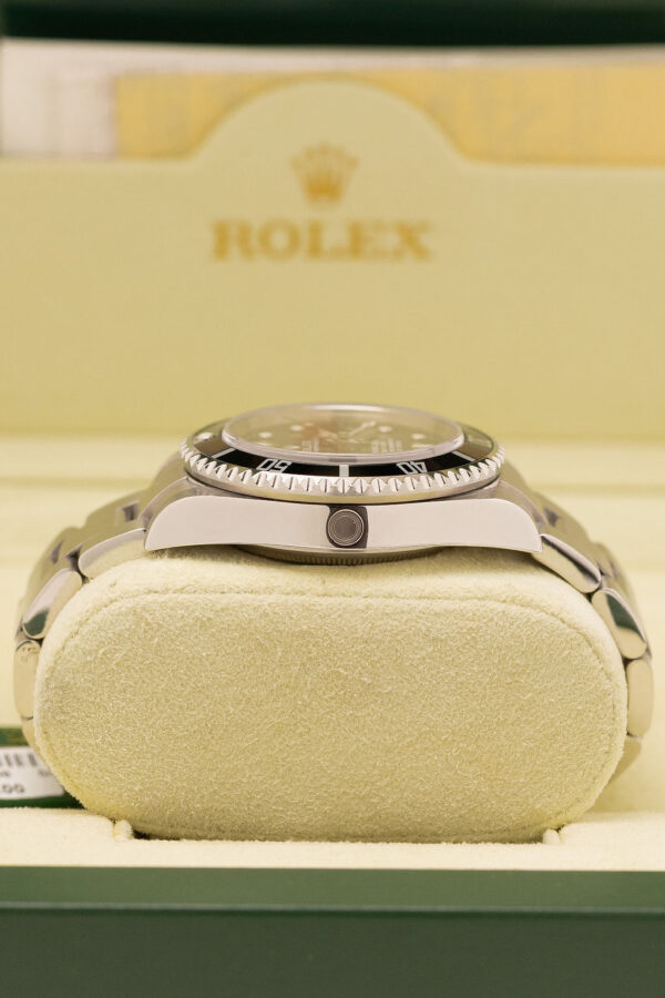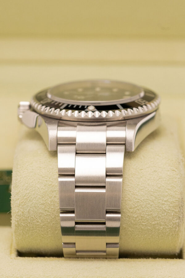 Water-resistant to an incredible 1,220 meters (4,000 feet), the 16600 is equipped with the Helium Escape Valve, allowing safe decompression during deep saturation dives — a hallmark of Rolex’s mastery in underwater innovation.