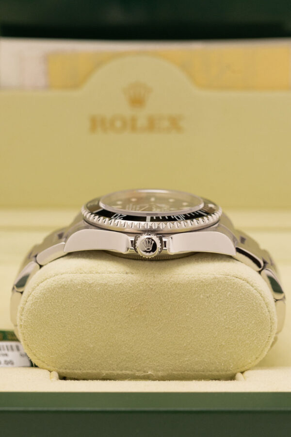 The black dial, with its luminous hour markers and unidirectional rotating bezel, ensures perfect legibility in even the darkest conditions. Paired with the Oyster bracelet and Fliplock extension link, it balances rugged capability with classic Rolex refinement.