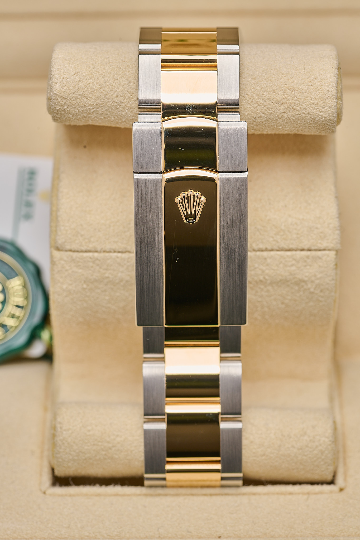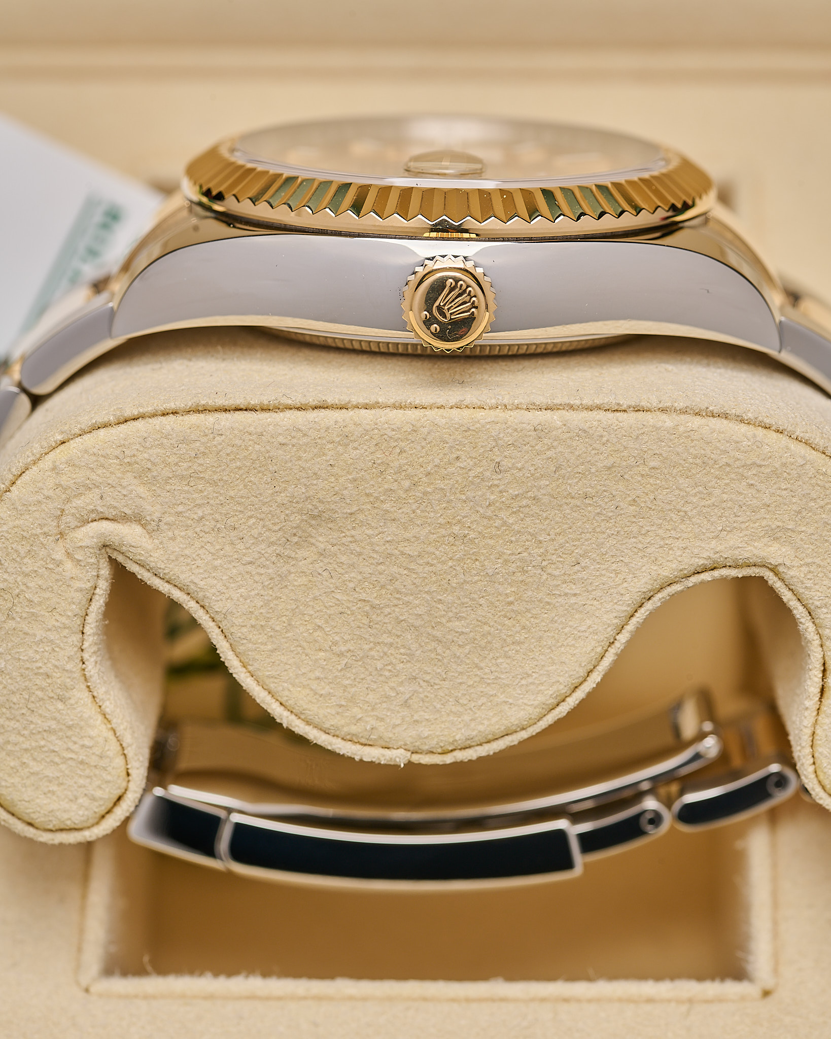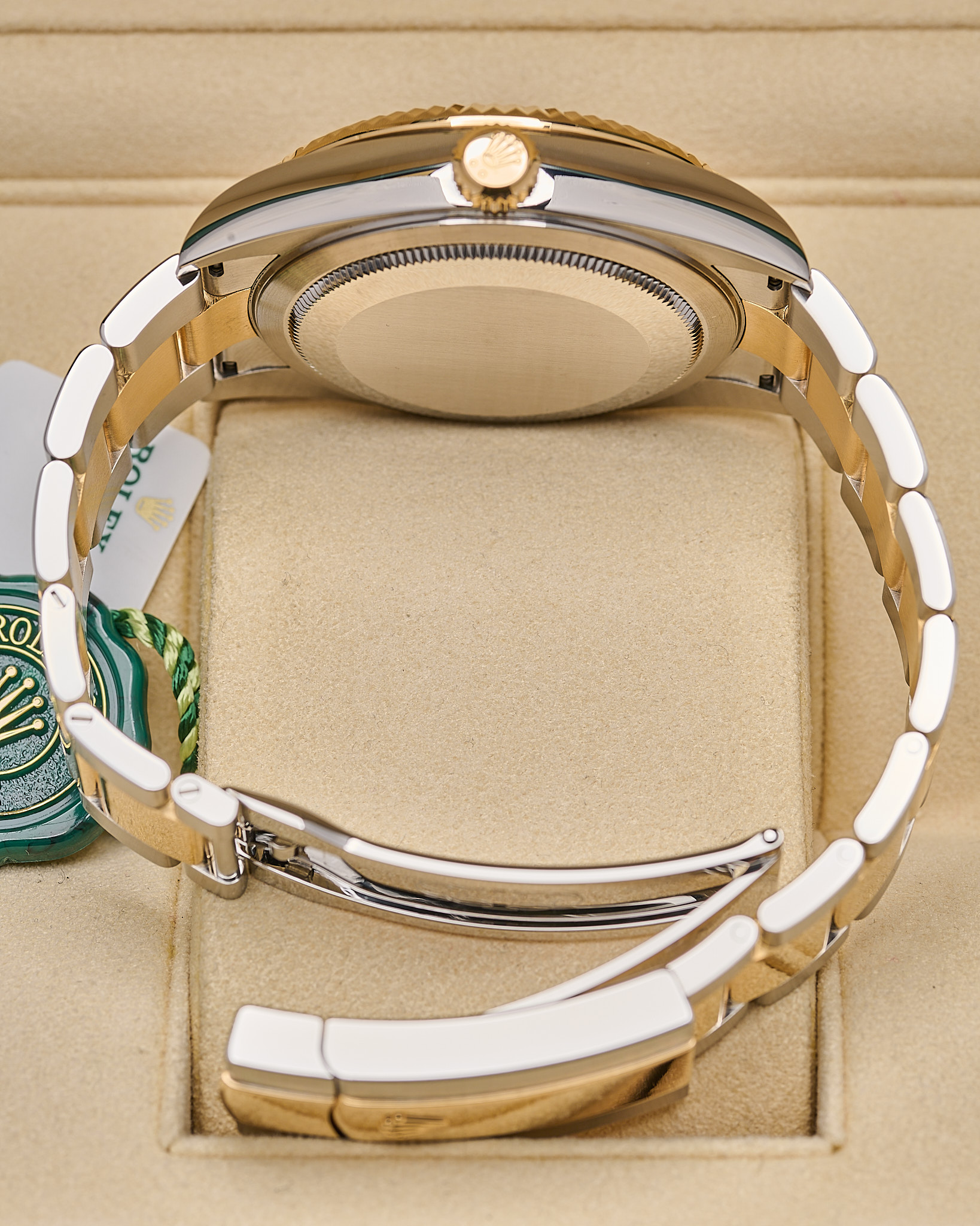 Rolex Sky-Dweller ref. 326933 features a 42mm stainless steel and yellow gold (Rolesor) case, complemented by a fluted 18ct yellow gold bezel.