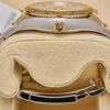 The watch is fitted with Rolex’s innovative annual calendar complication, displaying the date at 3 o’clock and the month indicated via apertures around the dial.