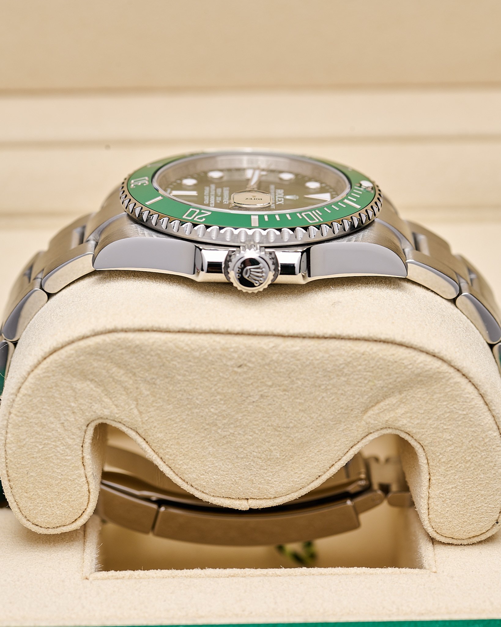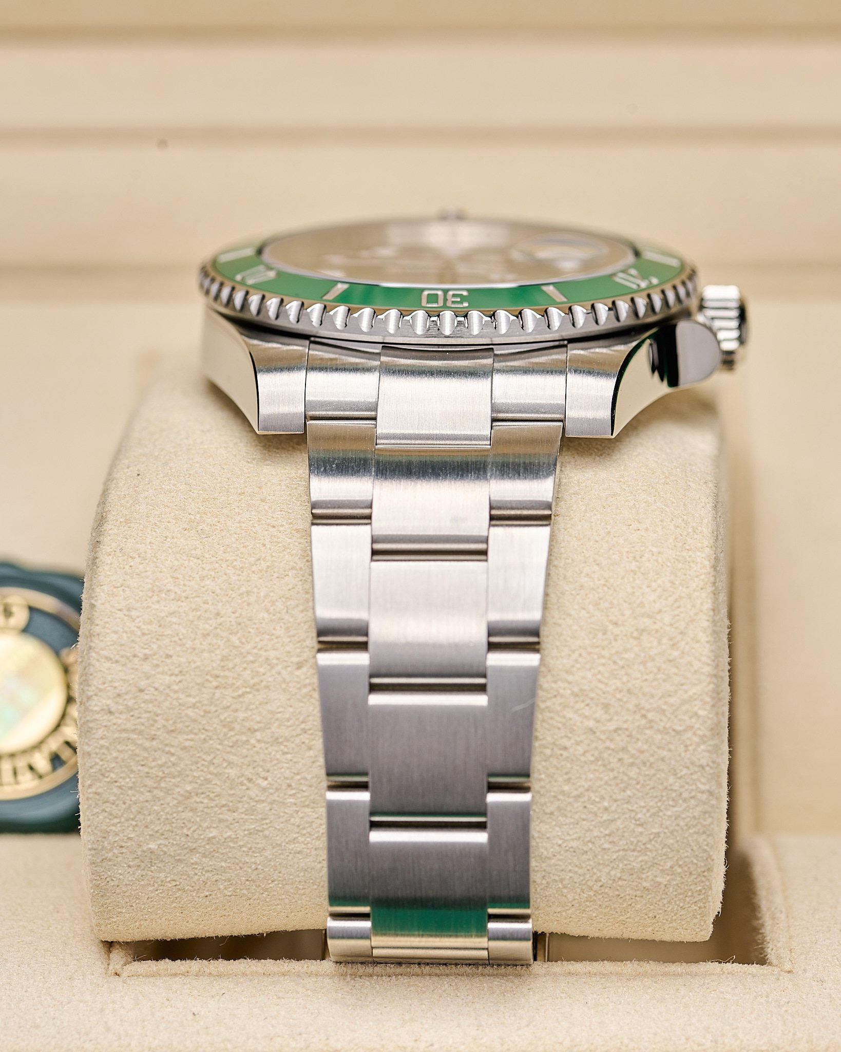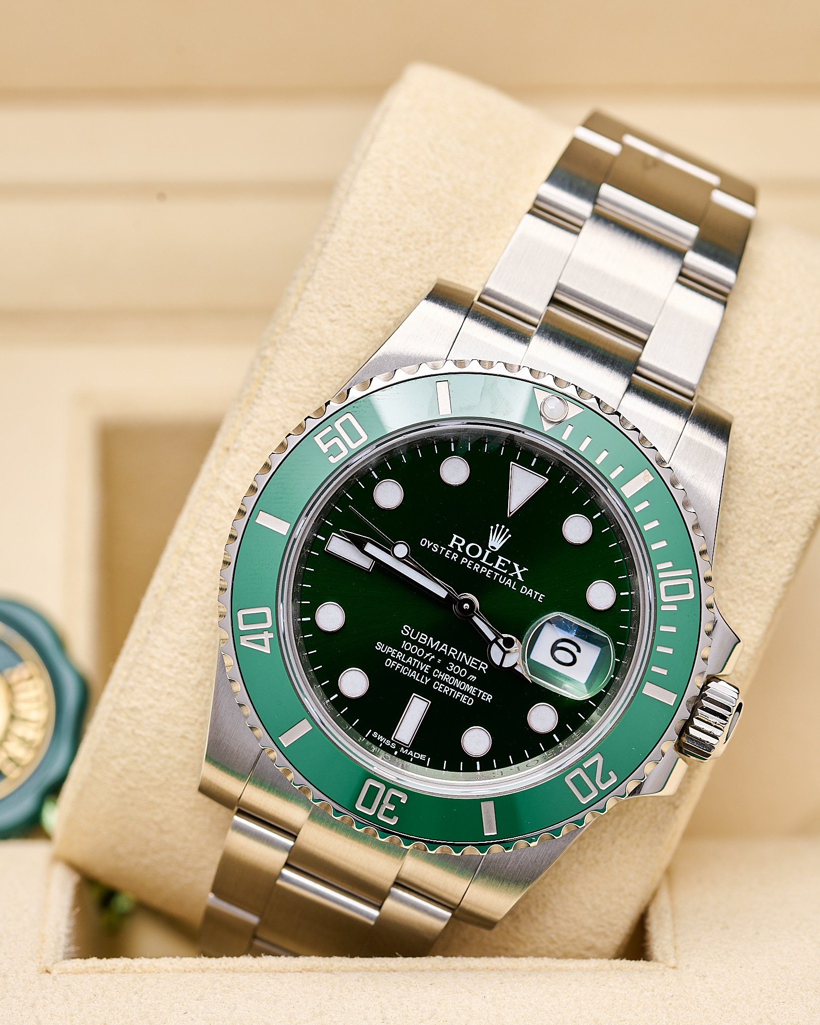 This 2017 highly popular “Hulk” features the iconic vibrant green sunburst dial paired with green ceramic bezel.