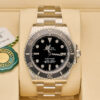 This Rolex Submariner 124060 No Date is a modern expression of one of Rolex’s most iconic professional watches. Crafted from Oystersteel, the 41mm case is fitted with a black Cerachrom ceramic bezel insert featuring a 60-minute graduated scale for precise dive timing. The black dial with Chromalight hour markers and hands ensures exceptional legibility, even in low-light conditions.