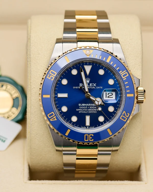The iconic and classic “Bluesey” Submariner in steel and yellow gold with blue bezel and dial.