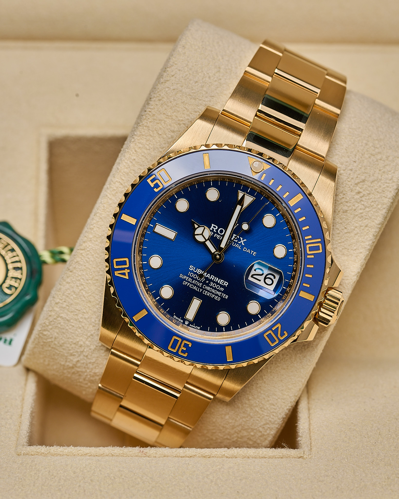 The latest variation of the solid gold Submariner is presented in the 41mm case with the slightly more tapered lugs, making for a modern look and a better wear on the wrist.