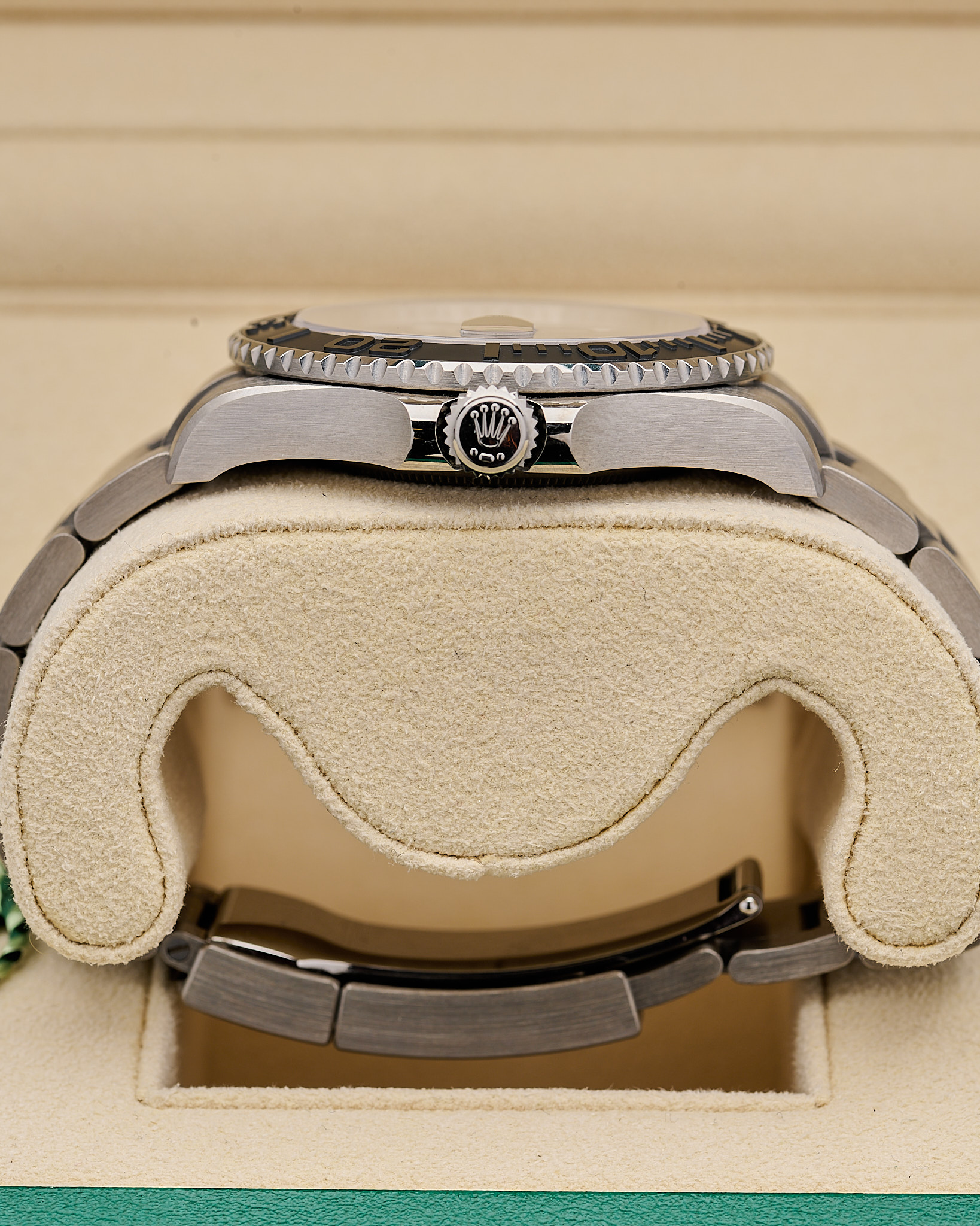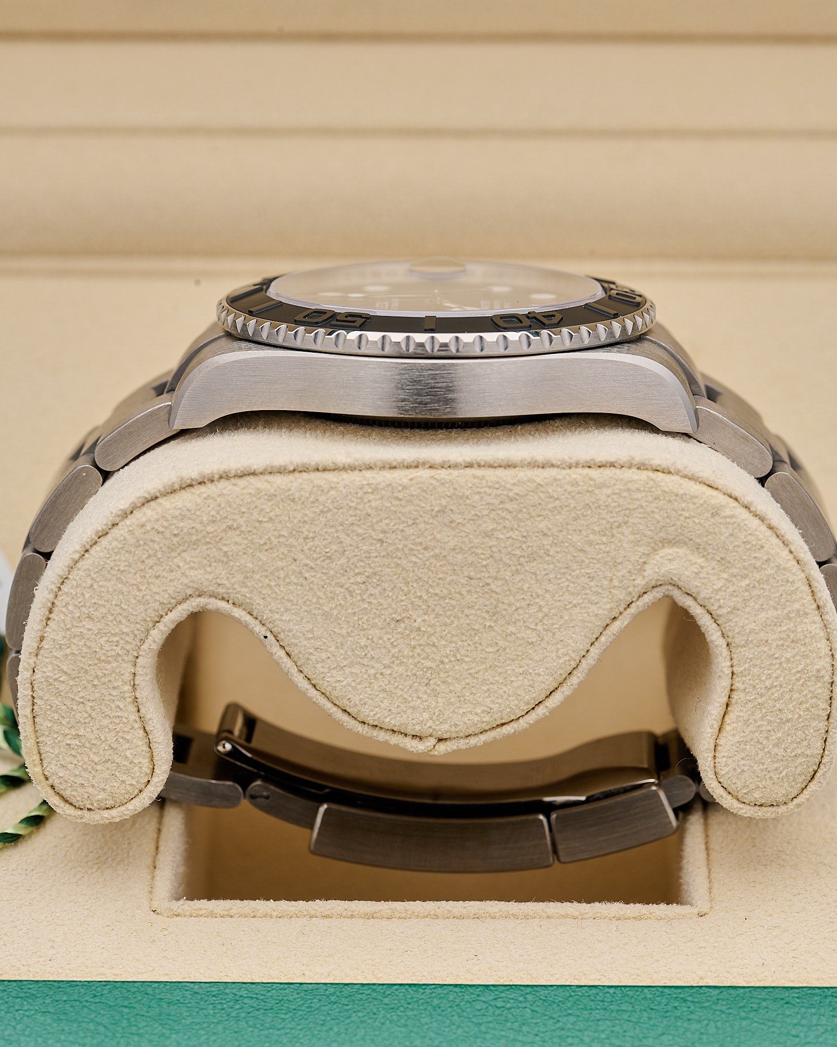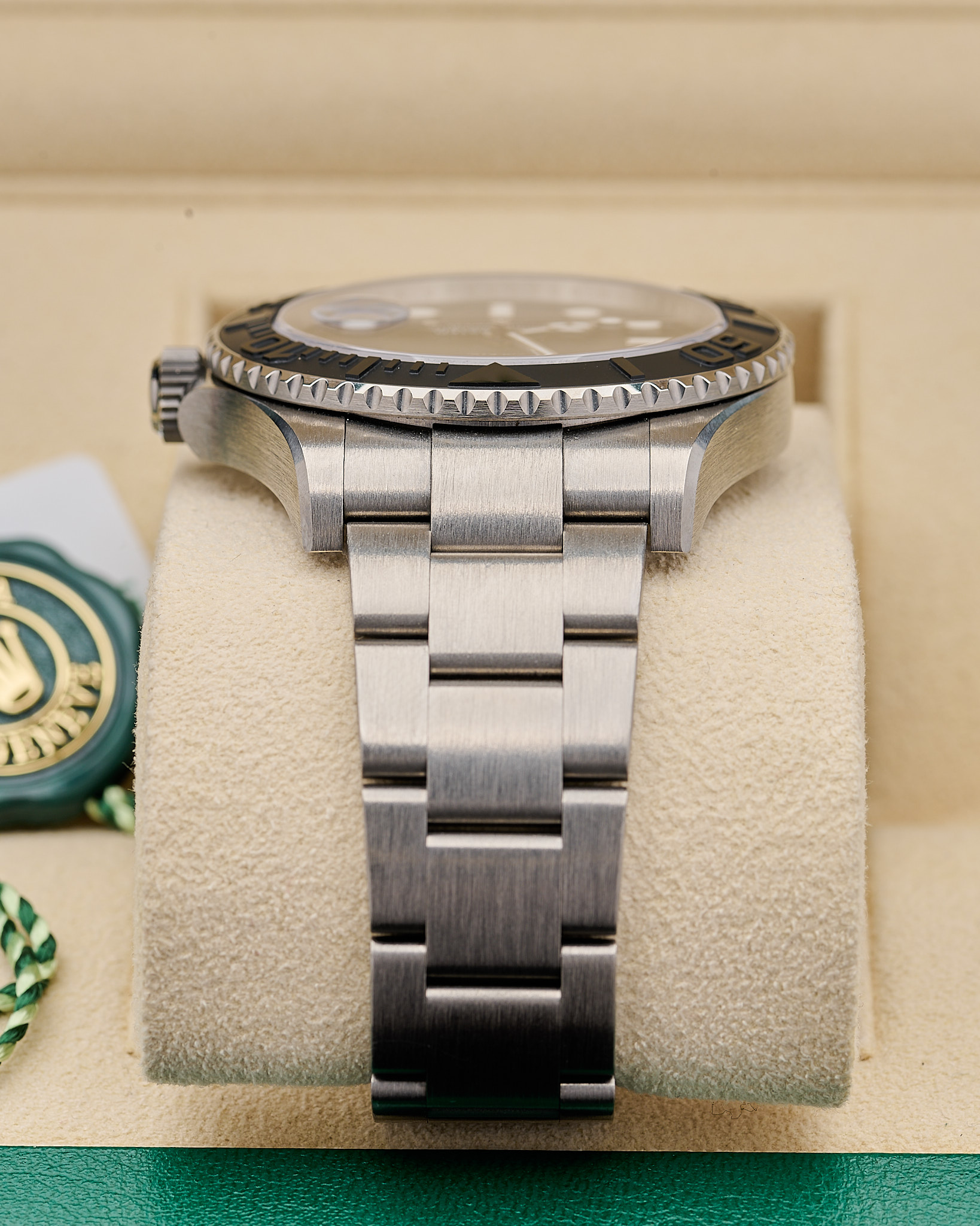 Finished with an Oyster bracelet and water resistance to 100 metres, this lightweight Yacht-Master combines cutting-edge materials with Rolex’s signature nautical design.