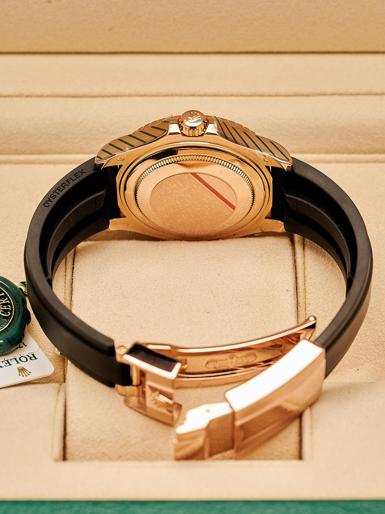 Sold in mint condition and as a complete set: Inclusive of both boxes, warranty card, serial tag, round tag, 2026 Rolex service, booklets and wallet.