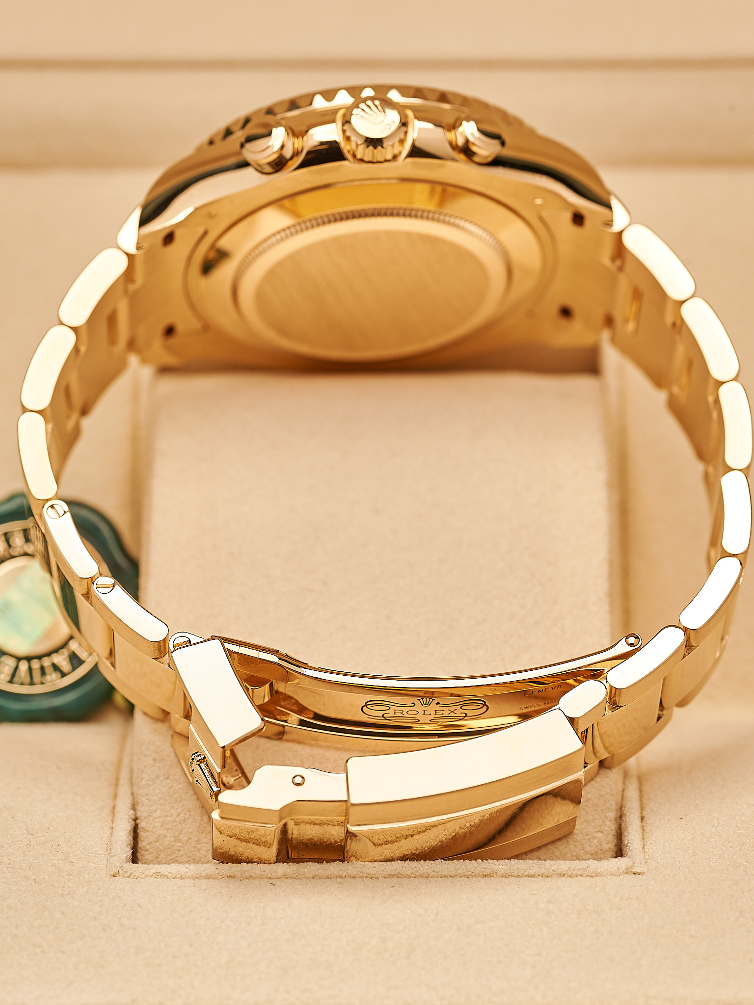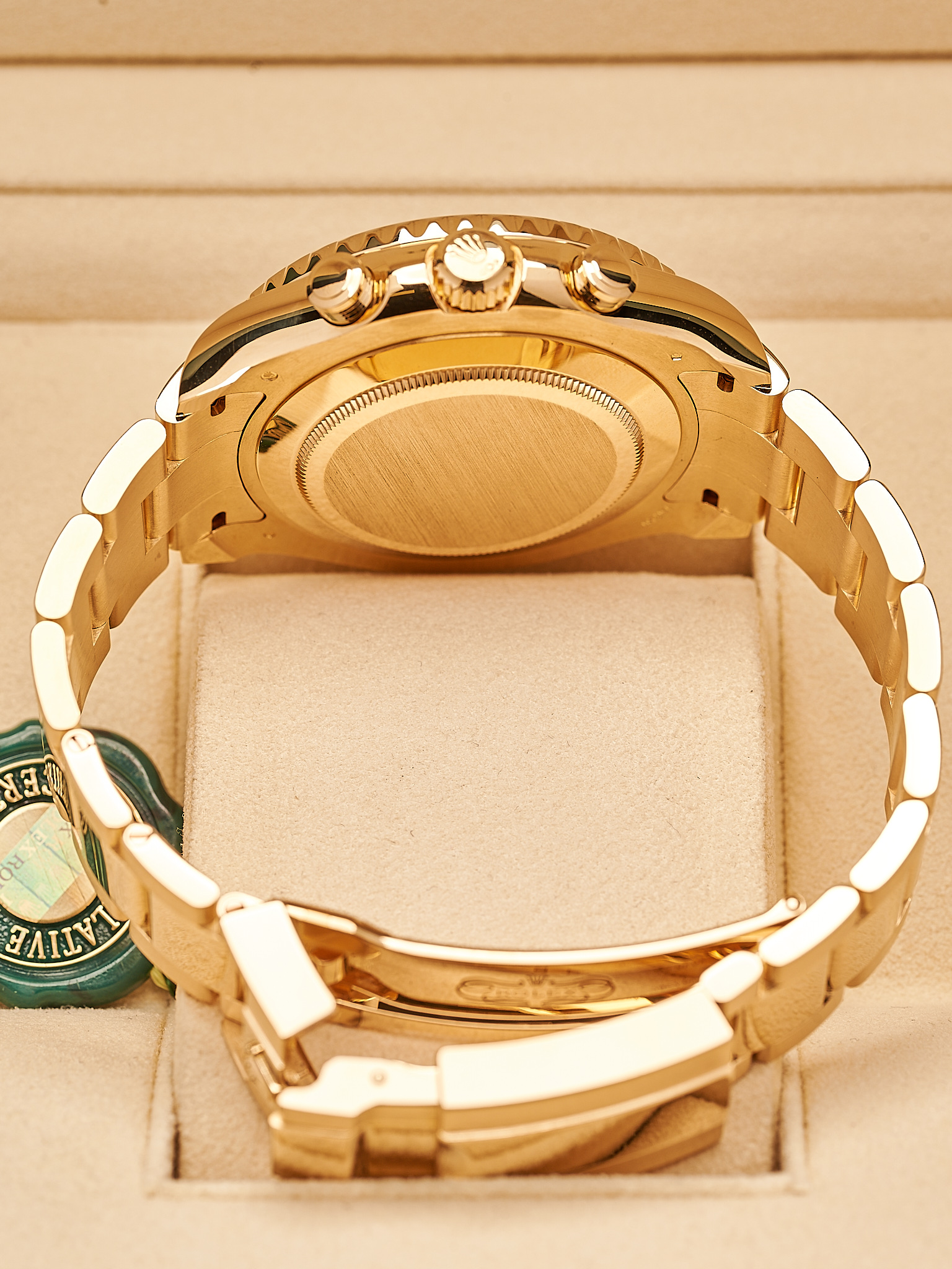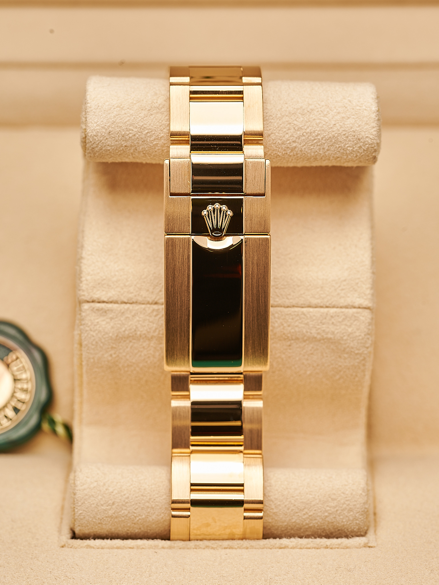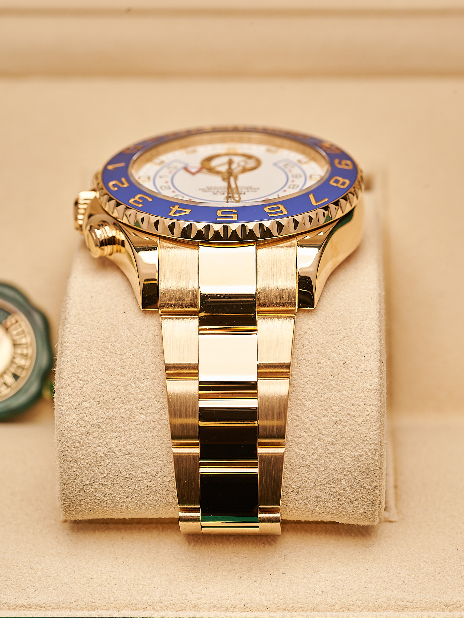 Crafted in 18k yellow gold with striking blue Cerachrom bezel, this 2021 44m YM is perfect for any collector or enthusiast. This model has the latest “Mercedes” gold hands.